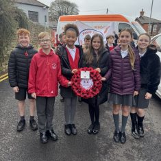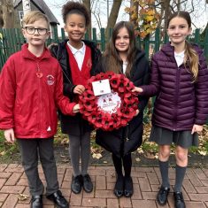 This morning, a group of our children attended the Whickham Remembrance Parade. Year Six children laid our school wreath and Year Five children proudly carried our banner.