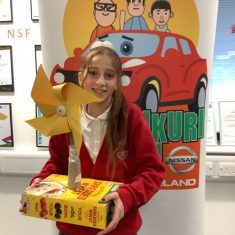 Year Six spent time at the Nissan plant learning about how designers and manufacturers are developing technology to better care for the environment and our futures. Before the visit, the children were set two challenges. Firstly, to design a new paint exterior for the Nissan Leaf – their fully electric car. Secondly, they had to construct a wind turbine from recycled materials making sure the turbine blades would catch the wind and designing an axle that would reduce friction.