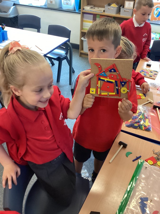 The children have settled in so well to year 1. Today in mastering number we have been using the rekenreks and this afternoon we made hammer art, spent time in the chill out zone and used our new construction equipment.