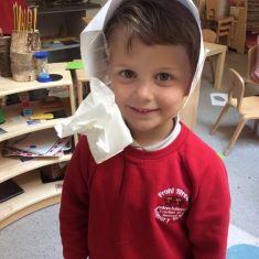 Receptions classroom is hot during the summer and being outside a lot means the children have to think about what they wear and how to keep safe in the sun. Their challenge today was to invent something that would protect them from the sun and something they could use while outside.