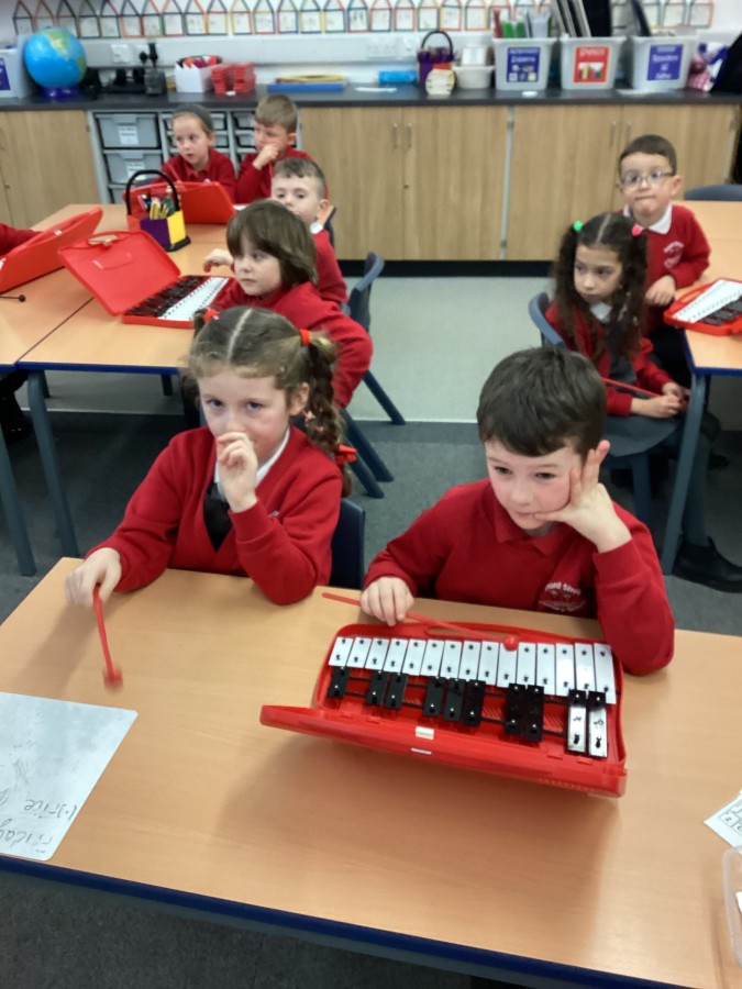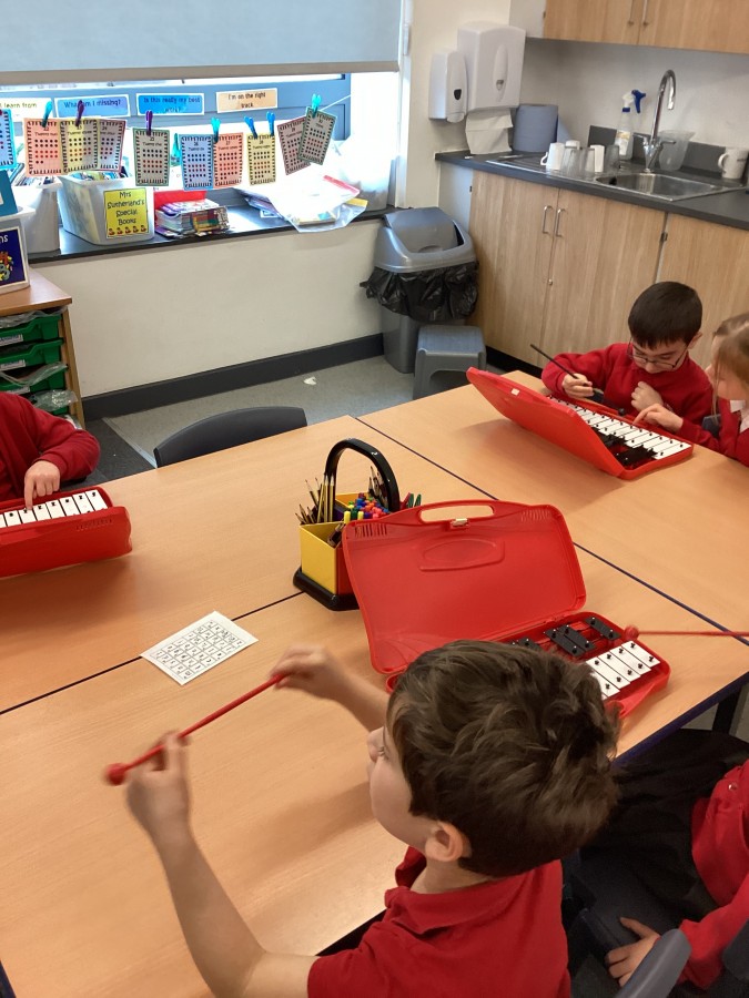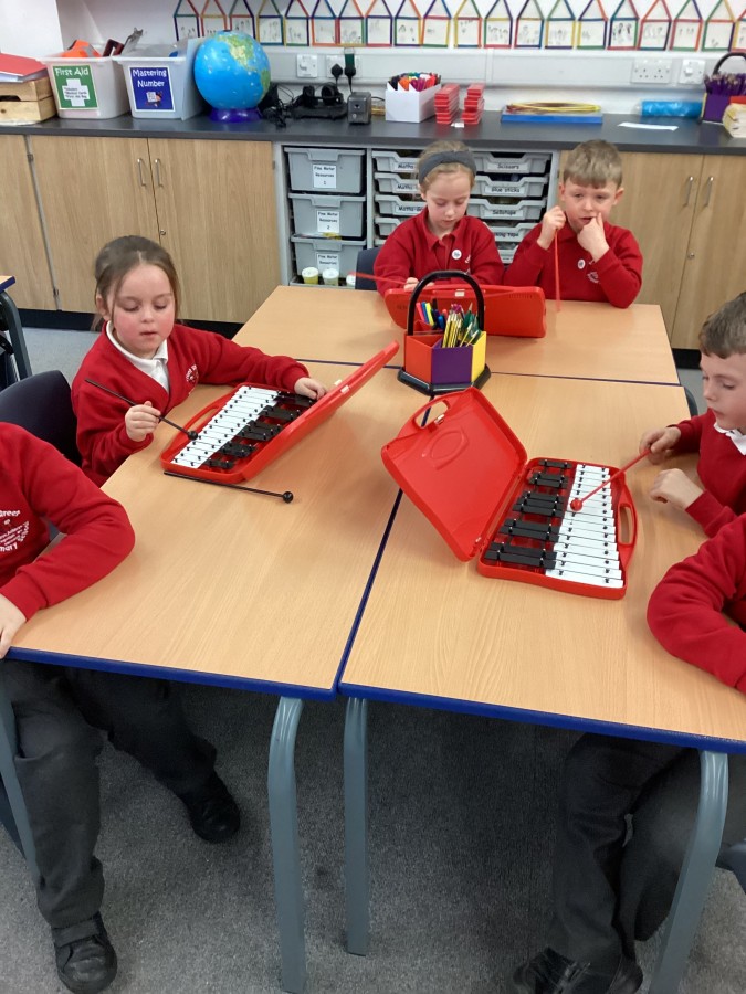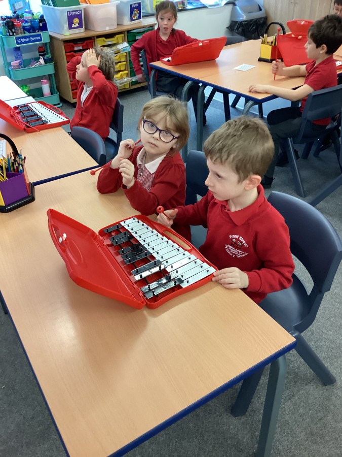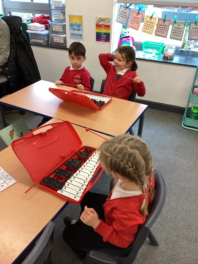 Today we combined pitch and rhythm to make melodies. We used the glockenspiels to play baby shark and twinkle twinkle.