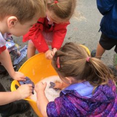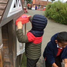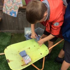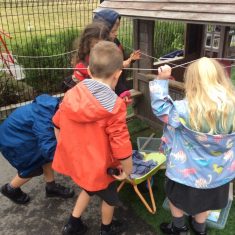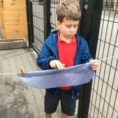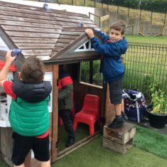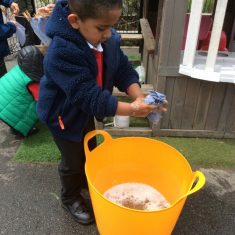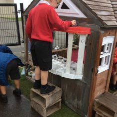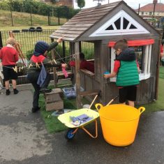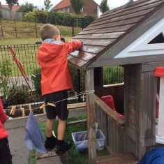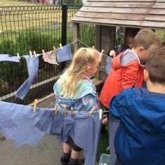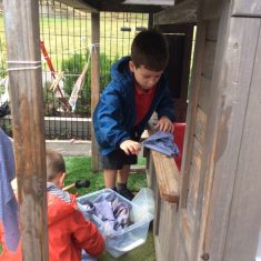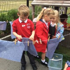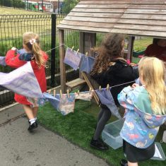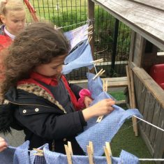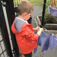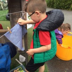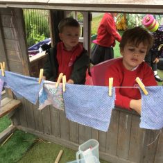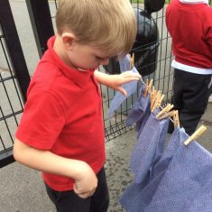 It was a very windy day so we decided to do some washing! We really put our fine motor skills to the test by pegging up all of our washing on a washing line. We practised folding the washing and then moved on to washing the house, even the roof! We had a very busy afternoon.