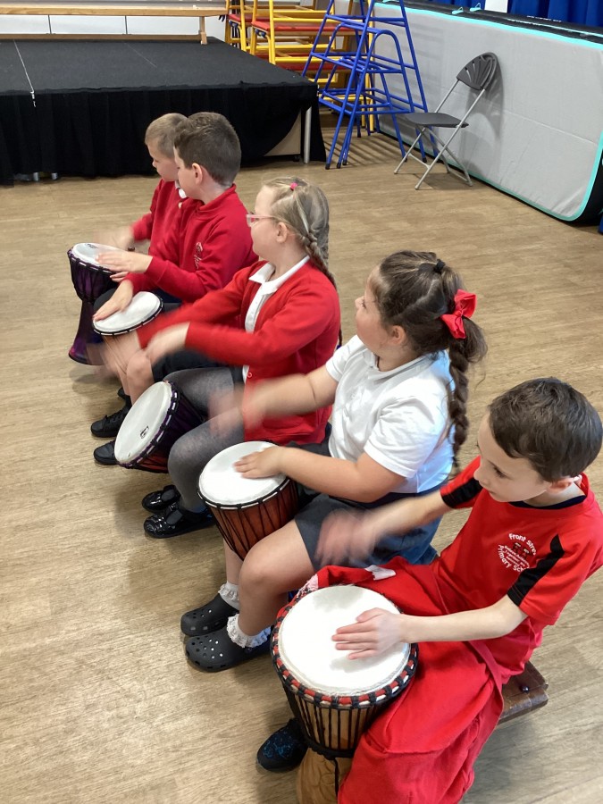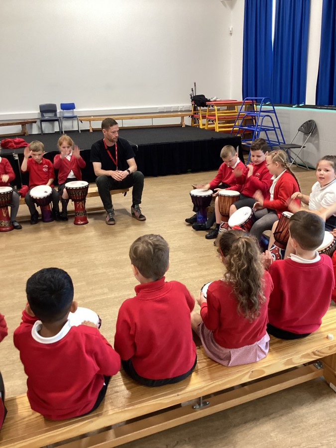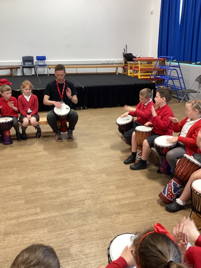Rob came in today to show us all how to play the African drums. We listened to the beat and the rythmn. We played music games and had a great morning.