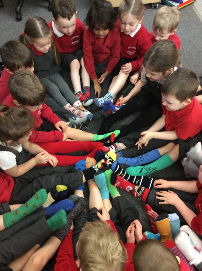This week Reception have been taking part in anti-bullying week. We wore odd socks and discussed how we are all different to each other and that this makes us unique and special. We talked about our rights and that we all have the right to be free from discrimination (we even talked about what this word means!). We also took part in an anti-bullying workshop where we learned what bullying was through story telling and that using kind words and actions can help stop bullying.