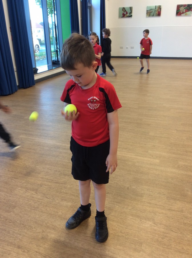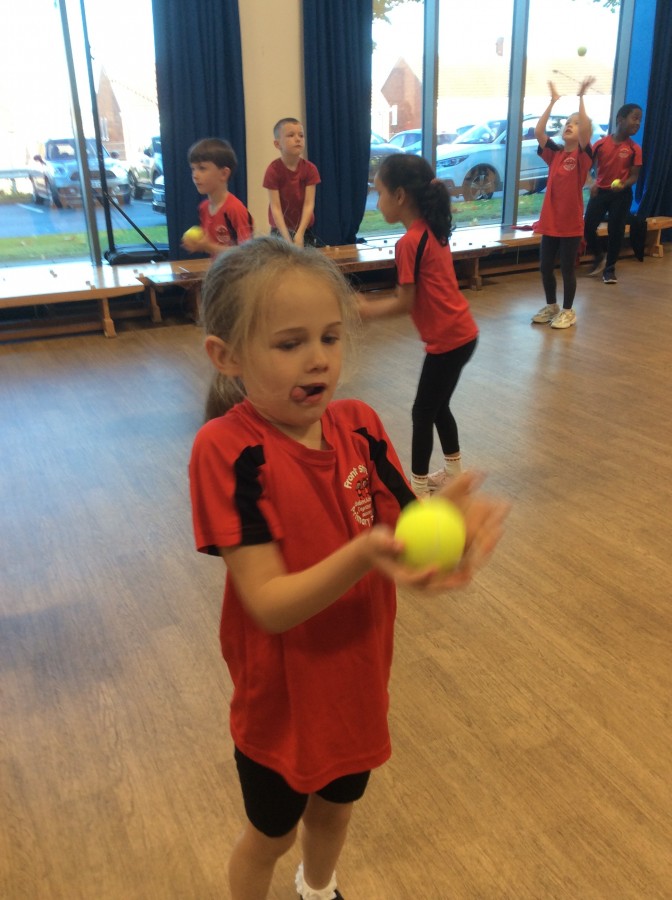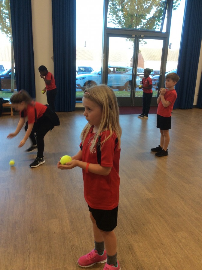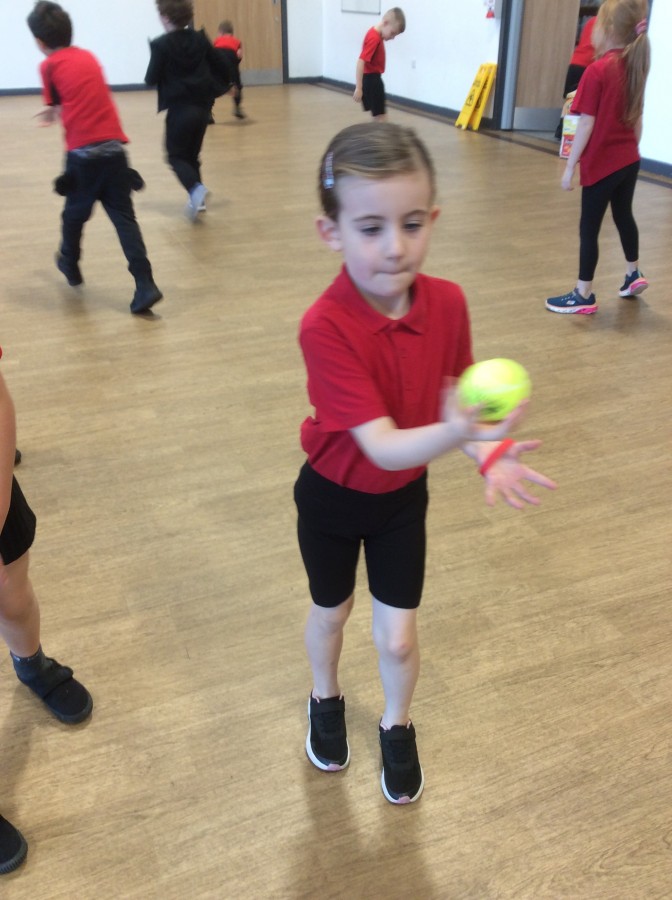 They have been practising throwing and catching the ball both 2 handed and 1 handed. The children have learnt that they need to keep their eye on the ball at Ll times and be aware of others.