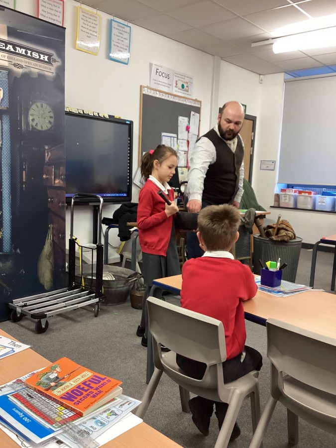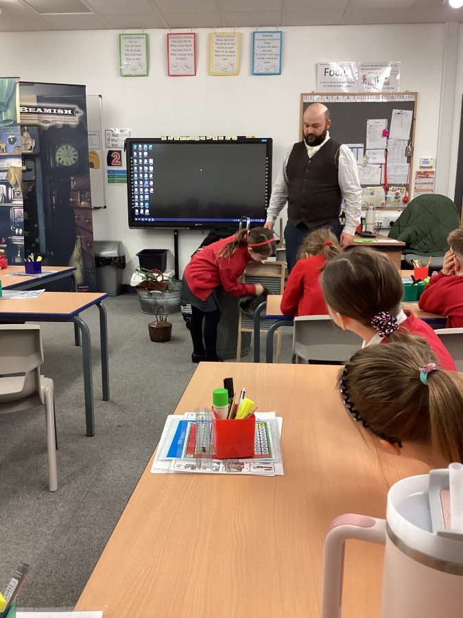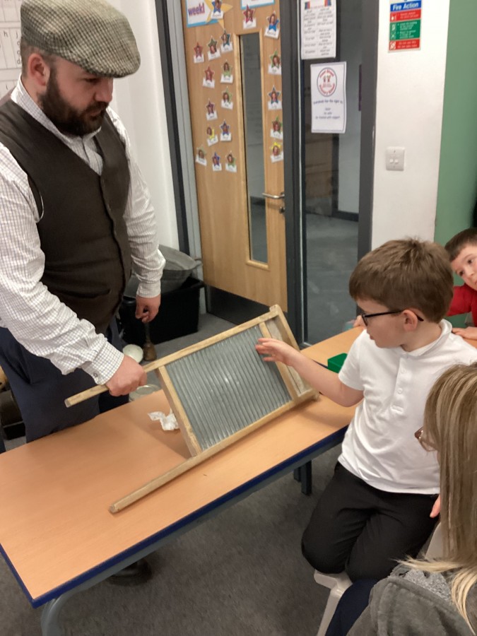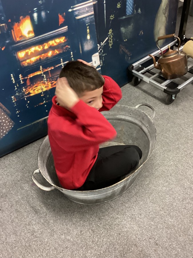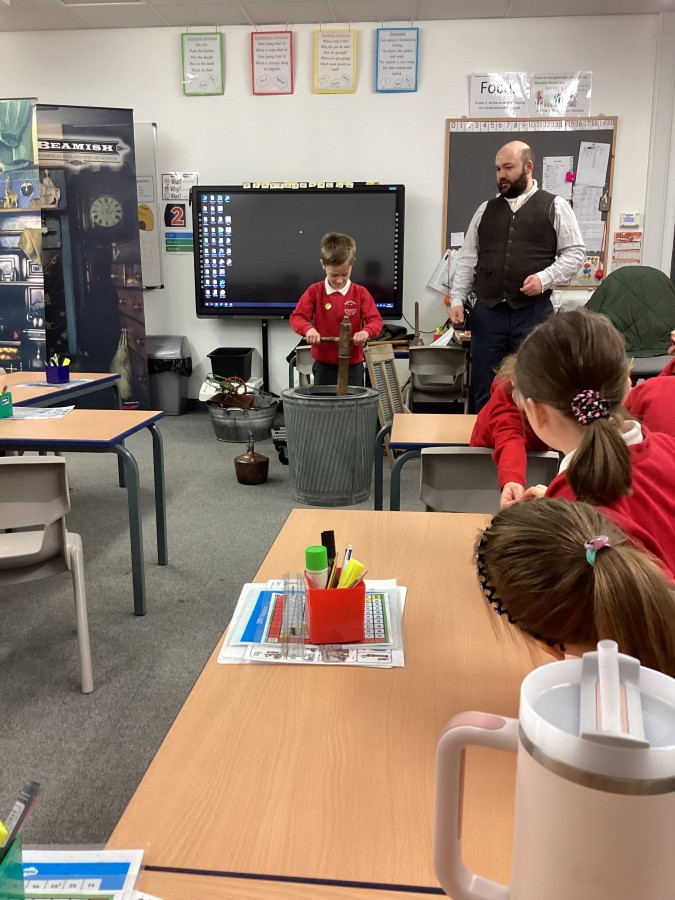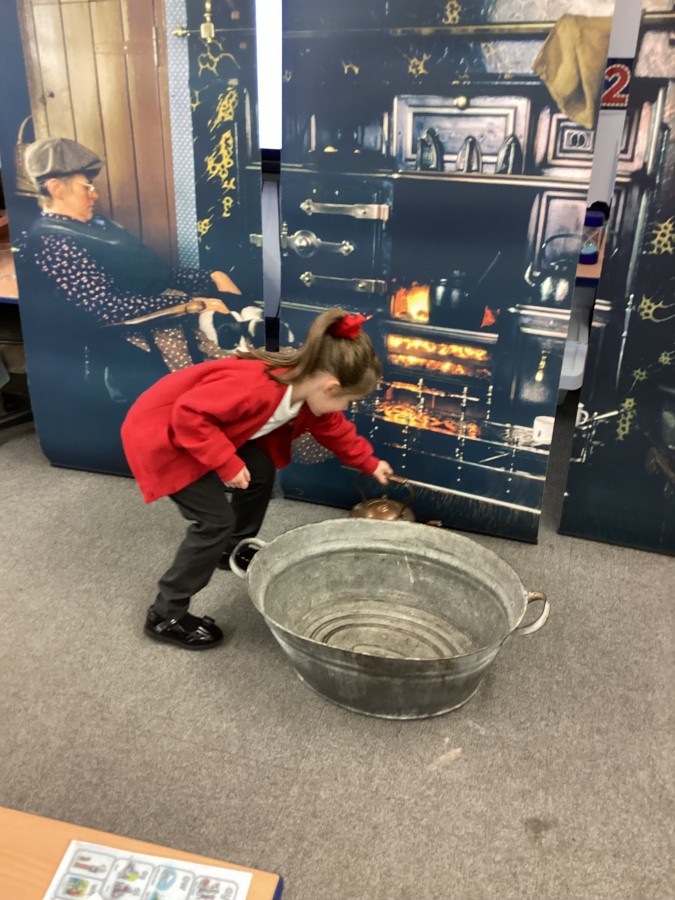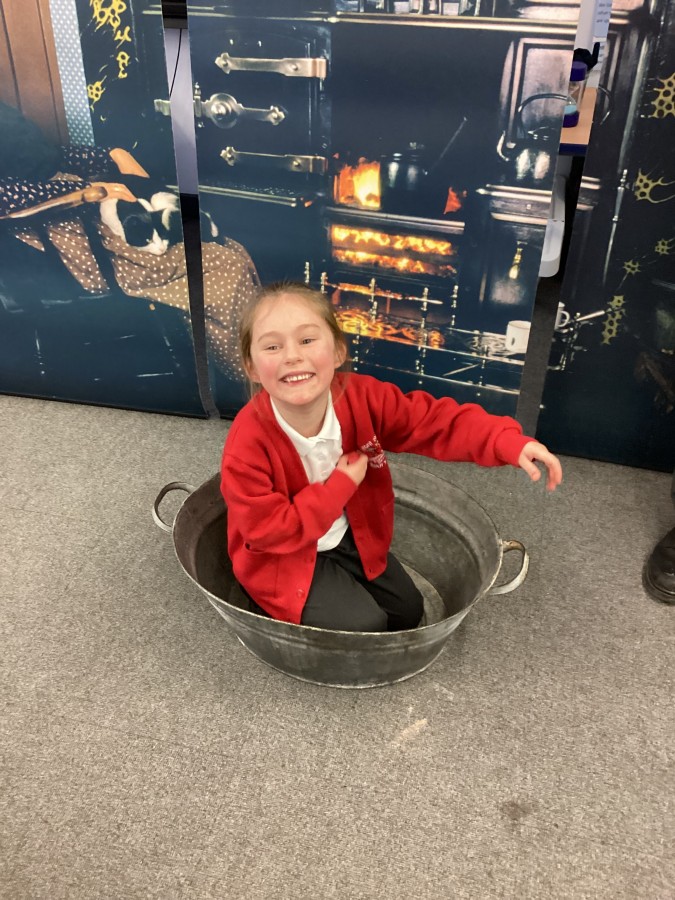 Beamish came in to visit us yesterday for the start of our new topic in History, houses and homes. We learnt about what life was like in the recent past. Did you know that all buttons have to be taken off shirts before wash day to prevent them cracking in the mangle, then had to be sown back on when the clothes were dry!