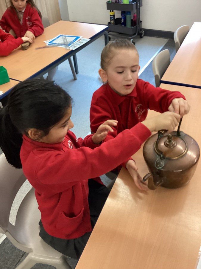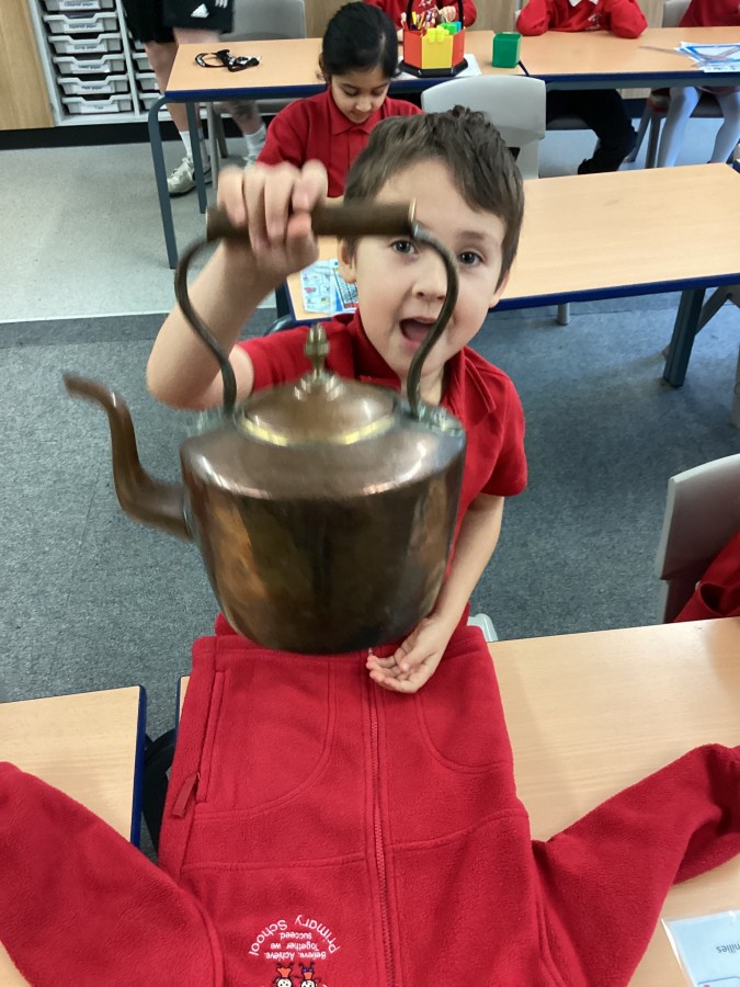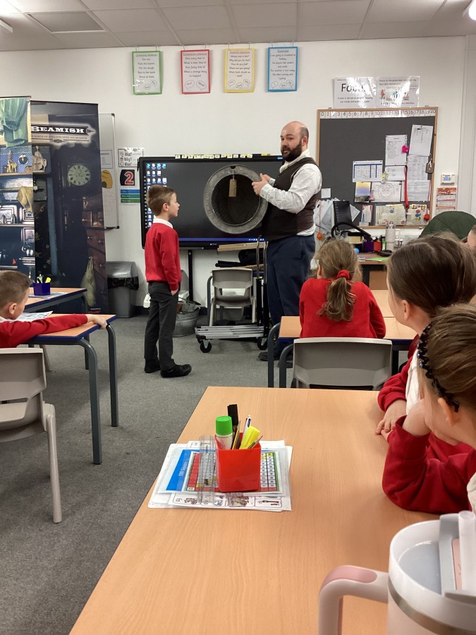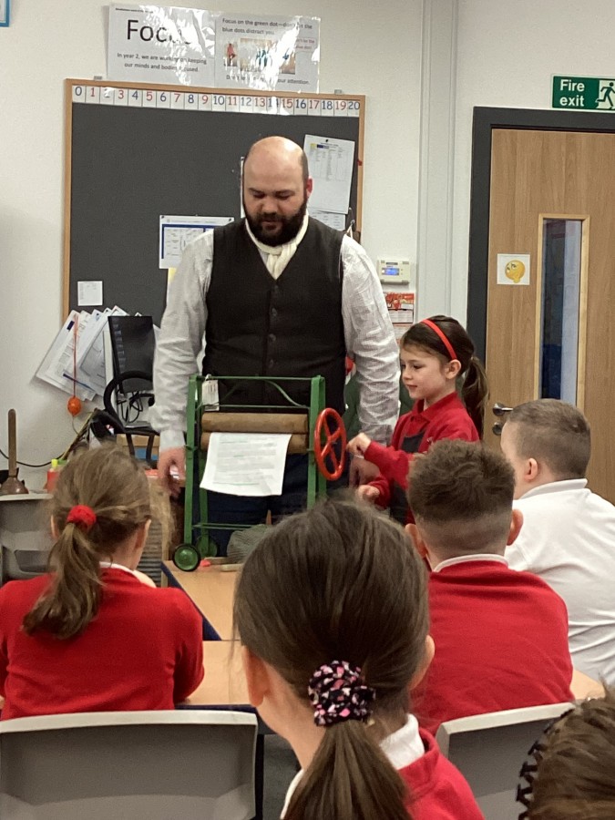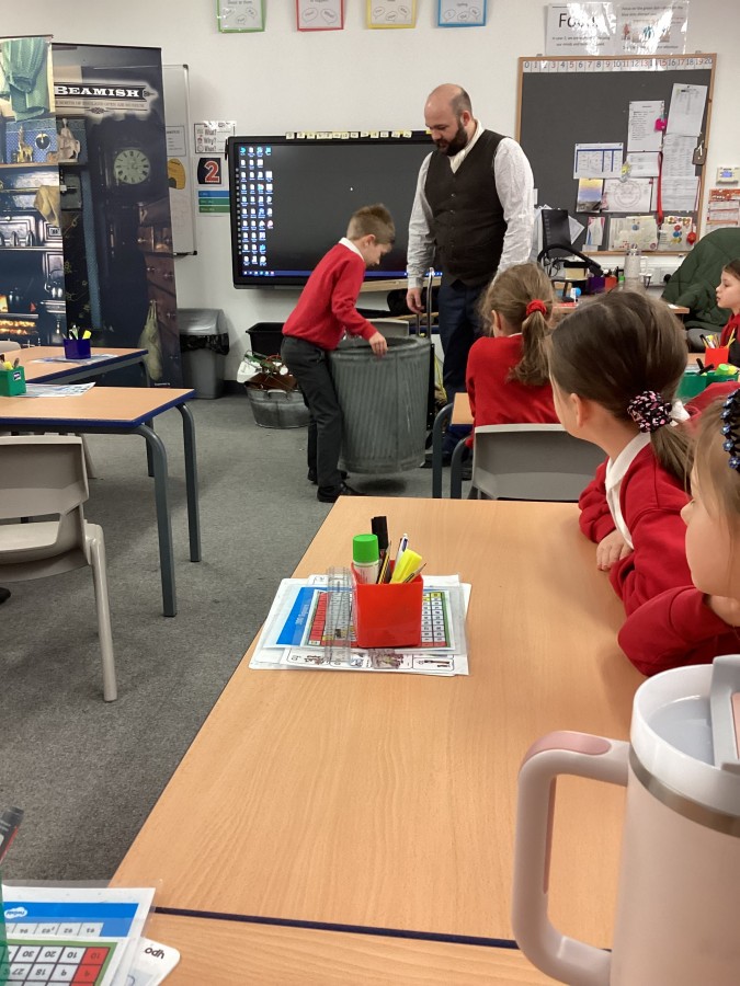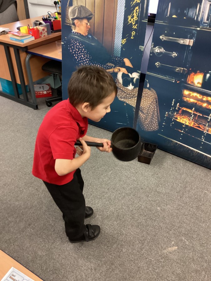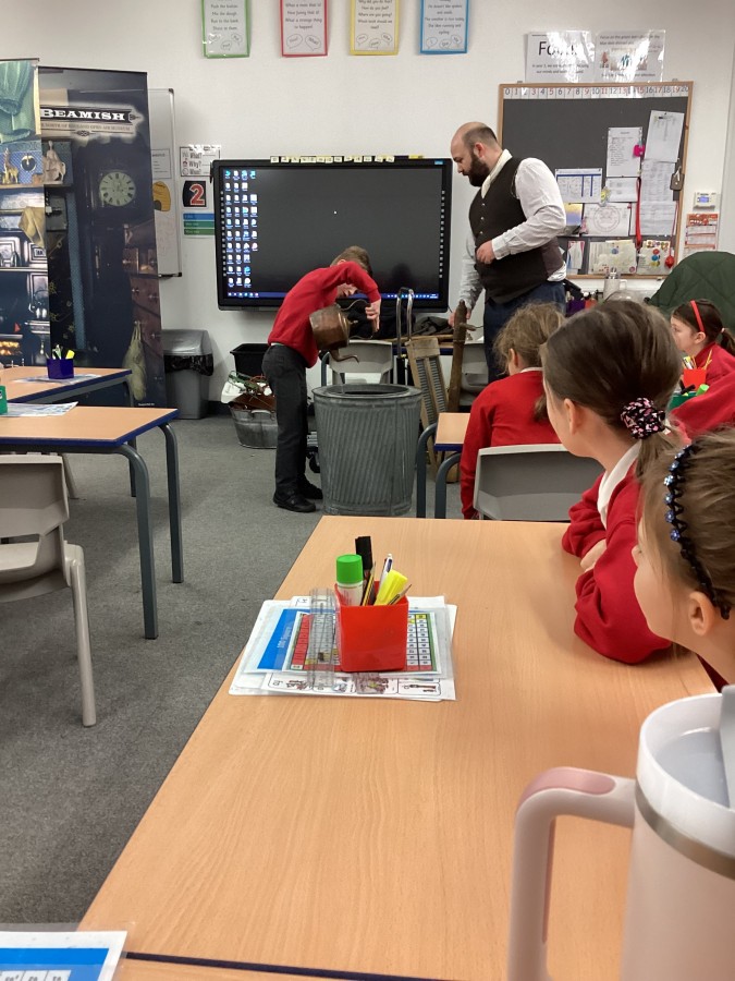 Beamish came in to visit us yesterday for the start of our new topic in History, houses and homes. We learnt about what life was like in the recent past. Did you know that all buttons have to be taken off shirts before wash day to prevent them cracking in the mangle, then had to be sown back on when the clothes were dry!