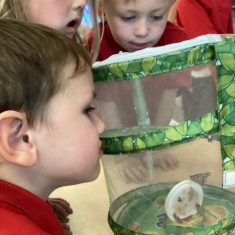 Today four chrysalides opened and four beautiful Painted Lady Butterflies emerged! The children were very excited!