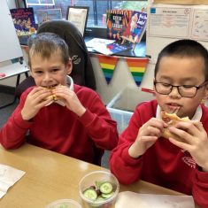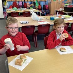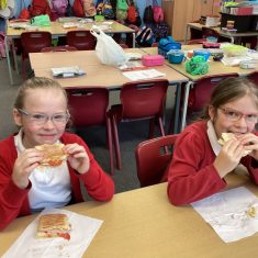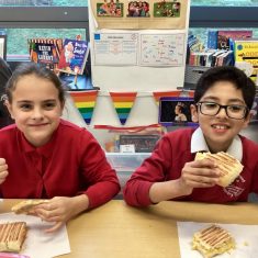 4O’N have used their food technology skills today to prepare hot toasted sandwiches. They used panini rolls and filled them with delicious ingredients. articles: 24 and 27
