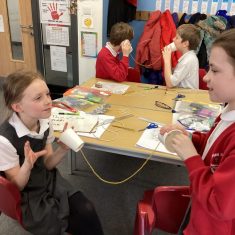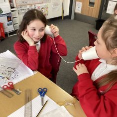 Year 4 investigated the difference between the thickness of string in a paper cup telephone and the quality of the sound produced. They found out that keeping the string taut made a difference too!