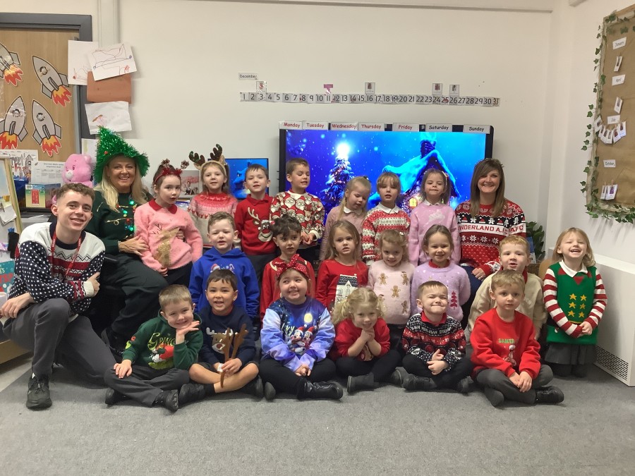 Christmas Jumper Day 2025 15 December 2025 Reception showing off their Christmas Jumpers during out Christmas jumper day 2025! Reception