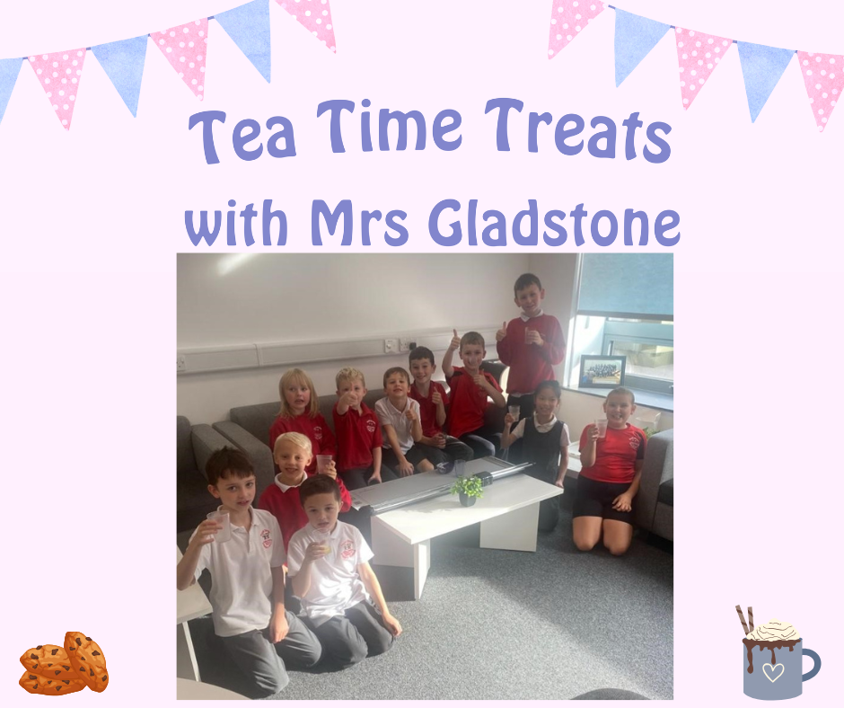 Tea Time Treats with Mrs Gladstone 10 October 2025 This weeks Top 10 Dojo Champions enjoyed their Tea Time Treats with Mrs Gladstone Year 1 Year 2 Year 3 Year 4 Year 5 Year 6