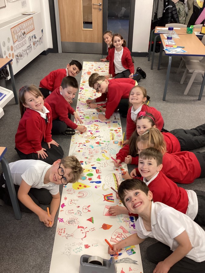 As part of World Mental Health Day Year 2 enjoyed listening to some relaxing music whilst doodling on the whole school doodle…