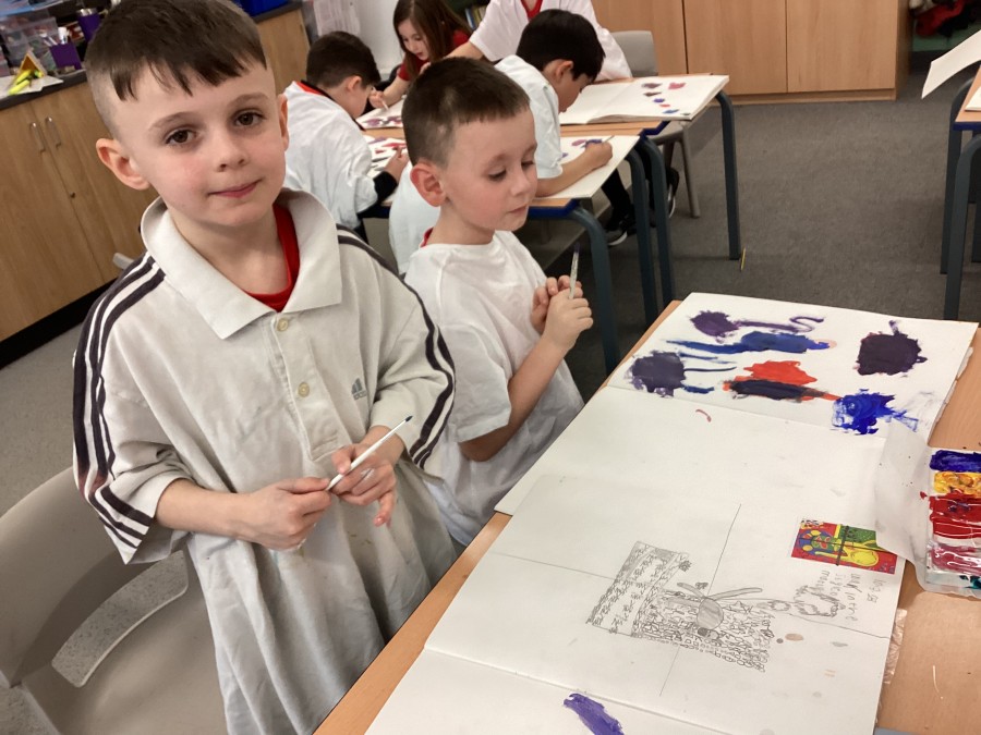 Changing colours 16 March 2023 We started with primary colours, added white and blue to make shades and secondary colours. Super colour mixing year 2! Year 2