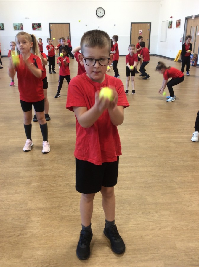 The children have been developing their ball skills this half term. They have been practising throwing and catching the ball both 2…