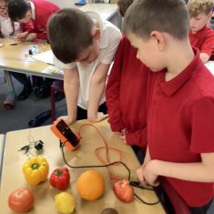 Electric Fruits 14 February 2025 We measured the voltage of different fruits in science this week. The children learnt that a chemical reaction takes place between the… Year 4