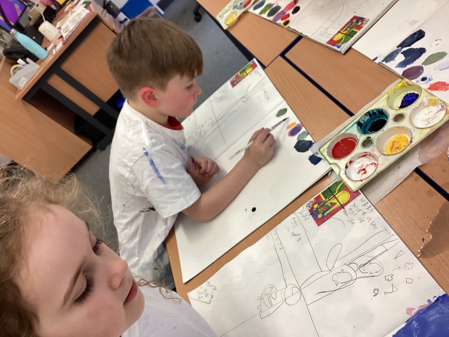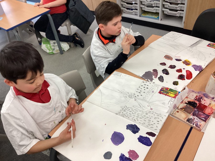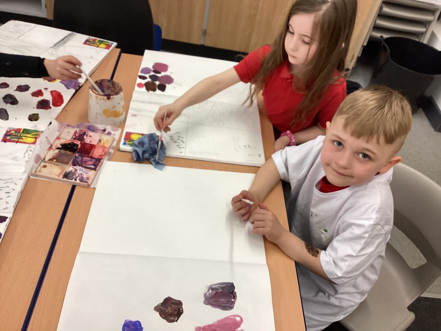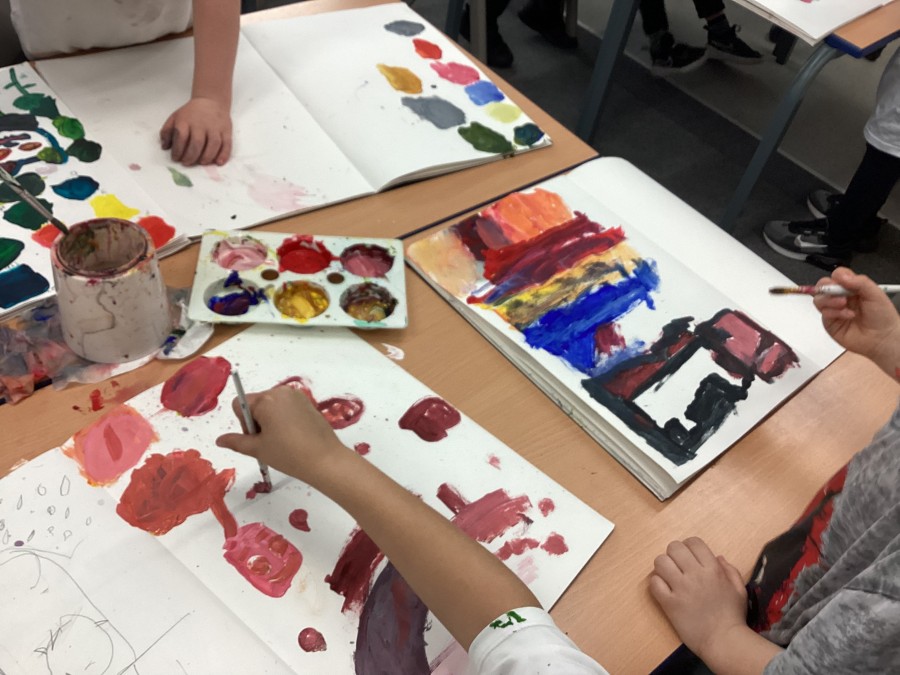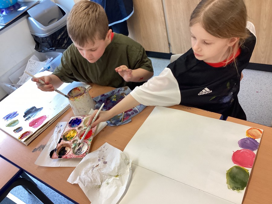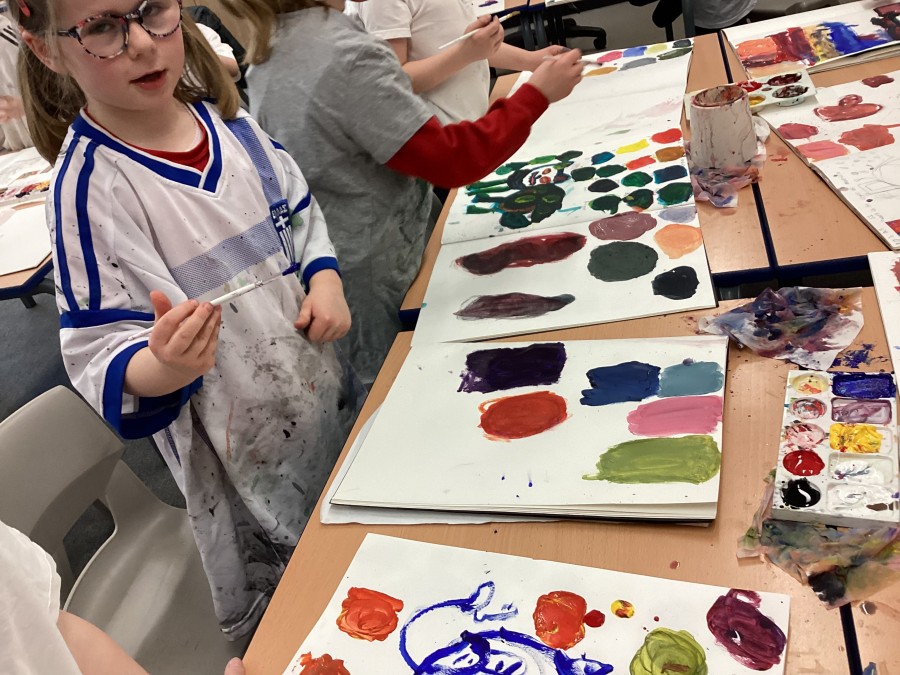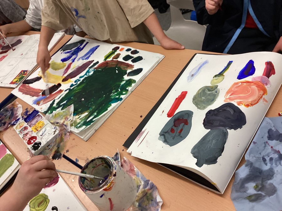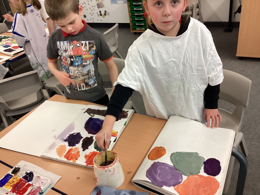 We started with primary colours, added white and blue to make shades and secondary colours.