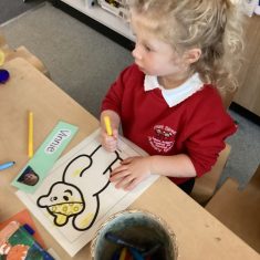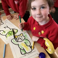 For Children in Need we all enjoyed wearing our Pudsey ears and colouring our Pudsey pictures. Then we made the air spotty with balloons as we know that Pudsey loves spotty patterns! Article 31