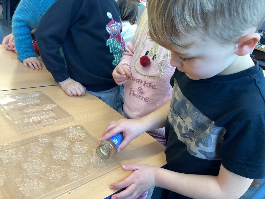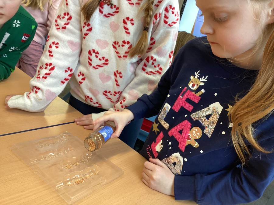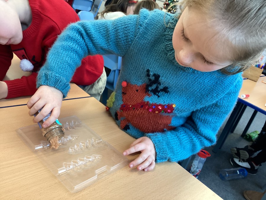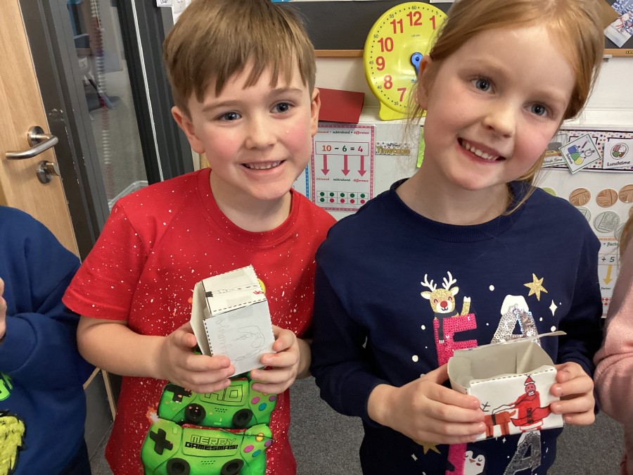 Year 2 thoroughly enjoyed making their designer Christmas chocolates as part of their autumn term DT work. They chose a design for their boxes, and throughout the lesson, they practiced skills such as pouring, cutting, folding.