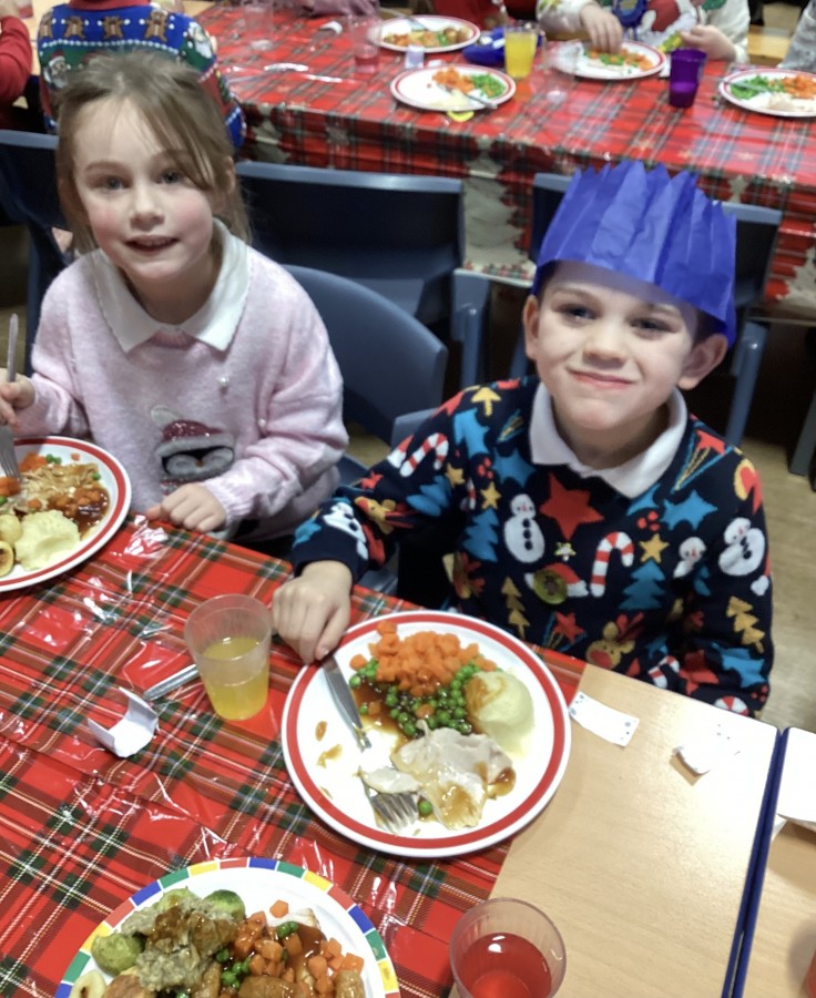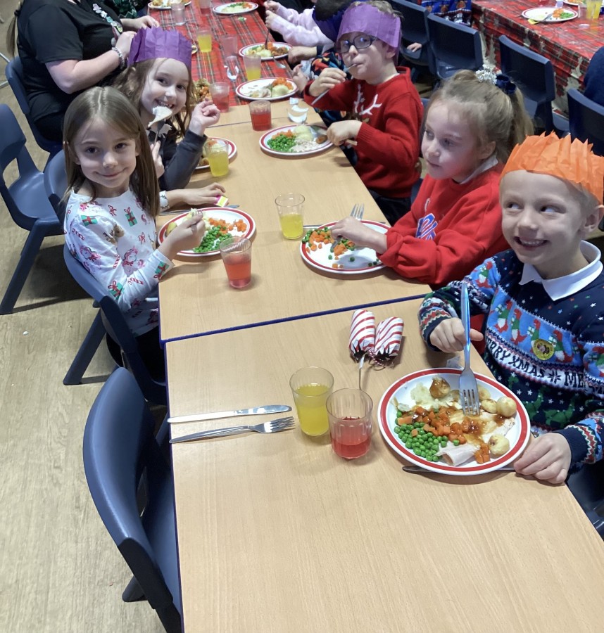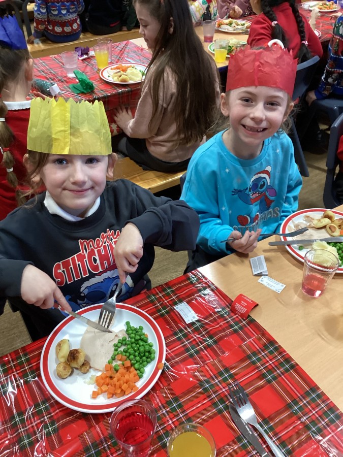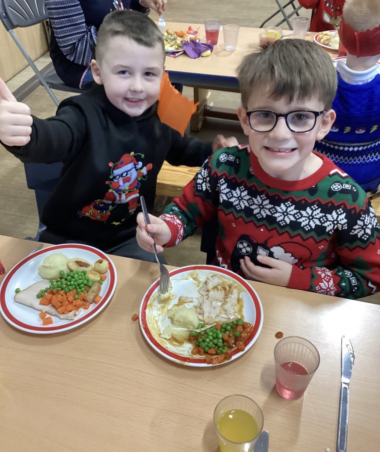 Today Year 2 enjoyed a delicious Christmas lunch thanks to our dinner staff!