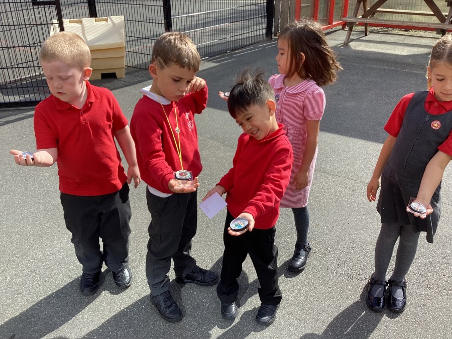 In geography Year 1 were finding north, south, east and west using compasses.