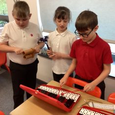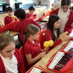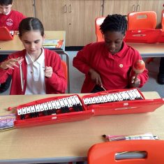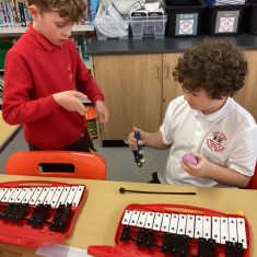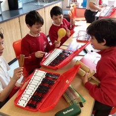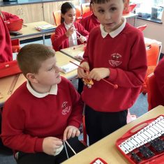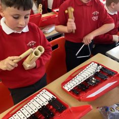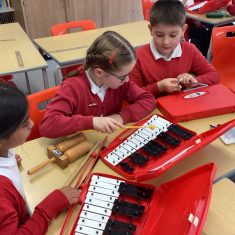 In Music, we’ve been composing our own music for glockenspiels, accompanied by untuned percussion. We recorded our melodies using stave notation, and came up with our own images to represent the accompanying percussion. It was loud but fun!