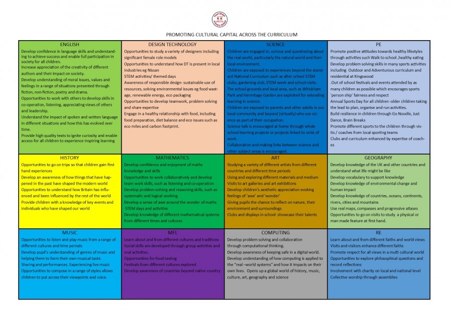 Our understanding of ‘knowledge and cultural capital’ is derived from the following wording in the national curriculum: ‘It is the essential knowledge that pupils need to be educated citizens, introducing them to the best that has been thought and said and helping to engender an appreciation of human creativity and achievement.’ “