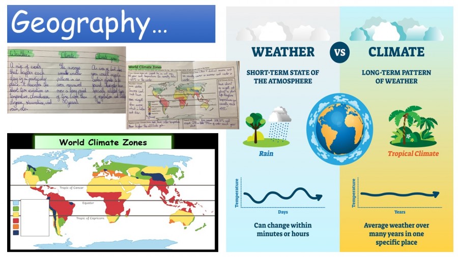 During our Geography lessons, we learned the difference between Weather and Climate, and we also learned about global climate zones and some of our actions that contribute to climate change.