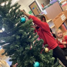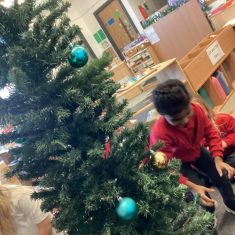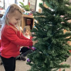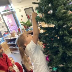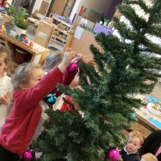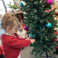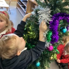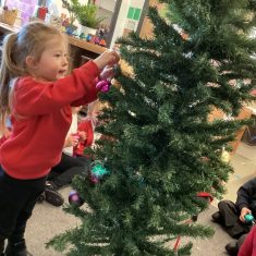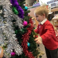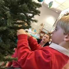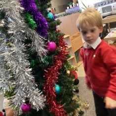 After reading ‘Slinkly Malinky’s Christmas Crackers’ by Linley Dodd, we decorated our own tree.