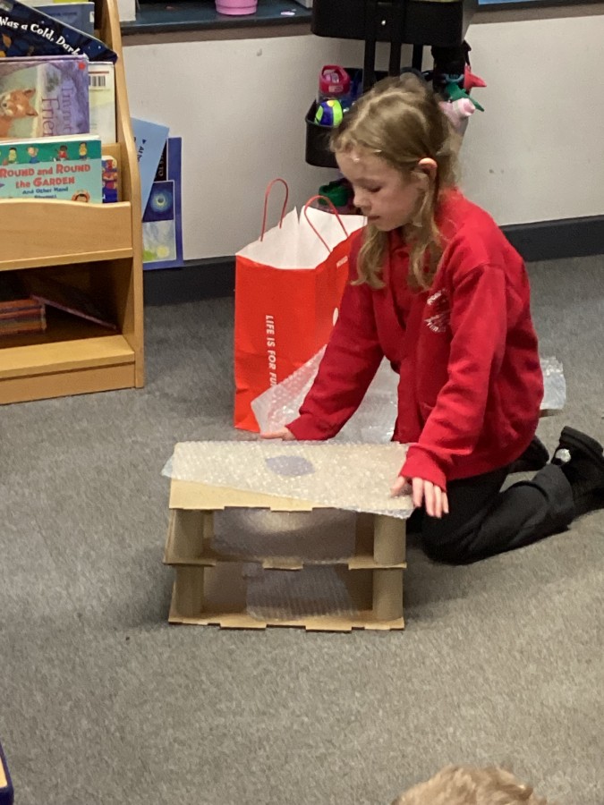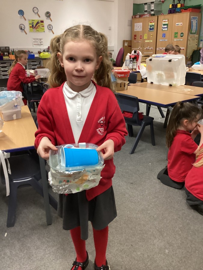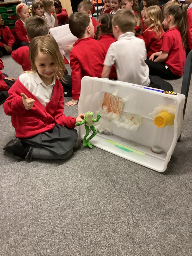 They were given the challenge of building a den that would fit Fred Frog in and be waterproof so that he didn’t get wet when it rained.