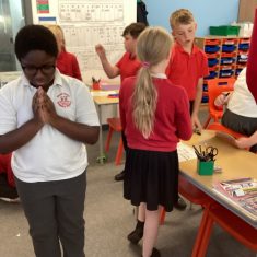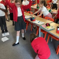 In Re, Year 5 learned about the story of the tax collector and the pharisee, and discussed its meaning to Christians. We then used our drama skills to explore what the people in the story might have been thinking and feeling.
