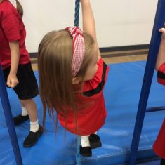 Today Reception all enjoyed their PE lesson. We focused on improving our gross motor skills by climbing, balancing and using our hand and eye coordination. We used our soft play and climbing frame equipment as well as doing Go Noodle dancing!