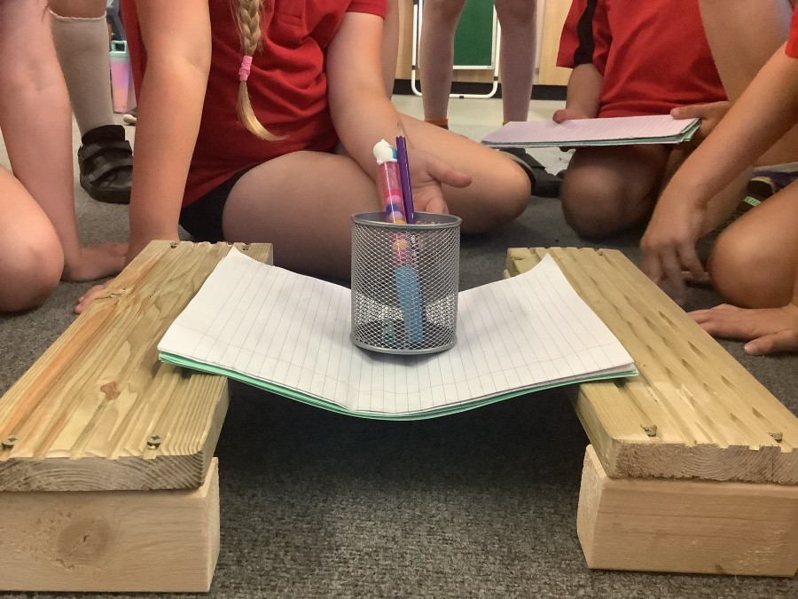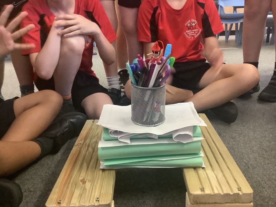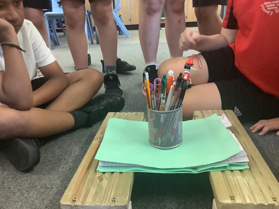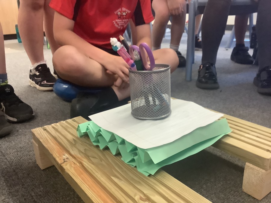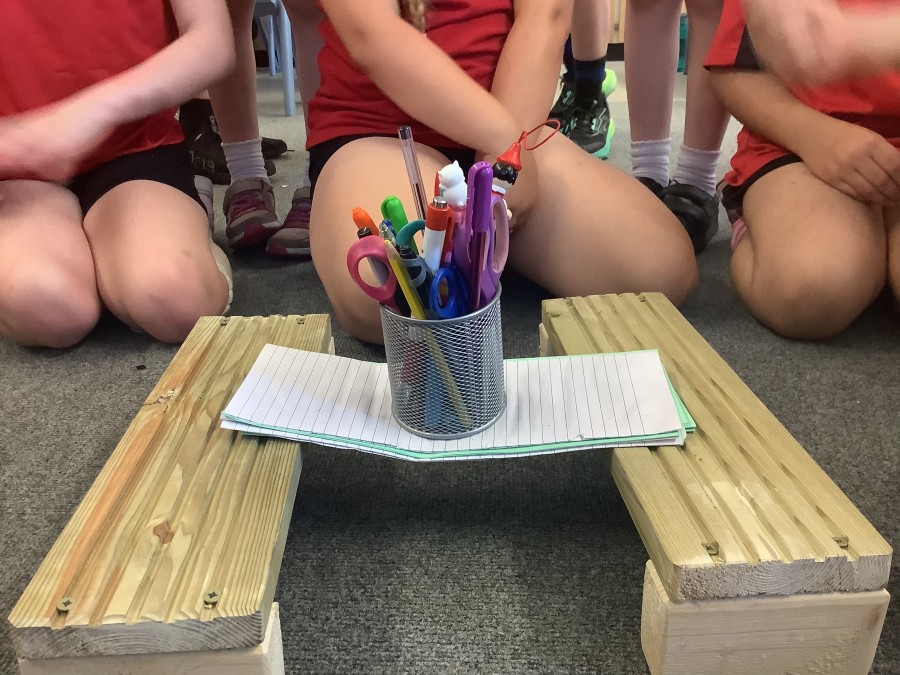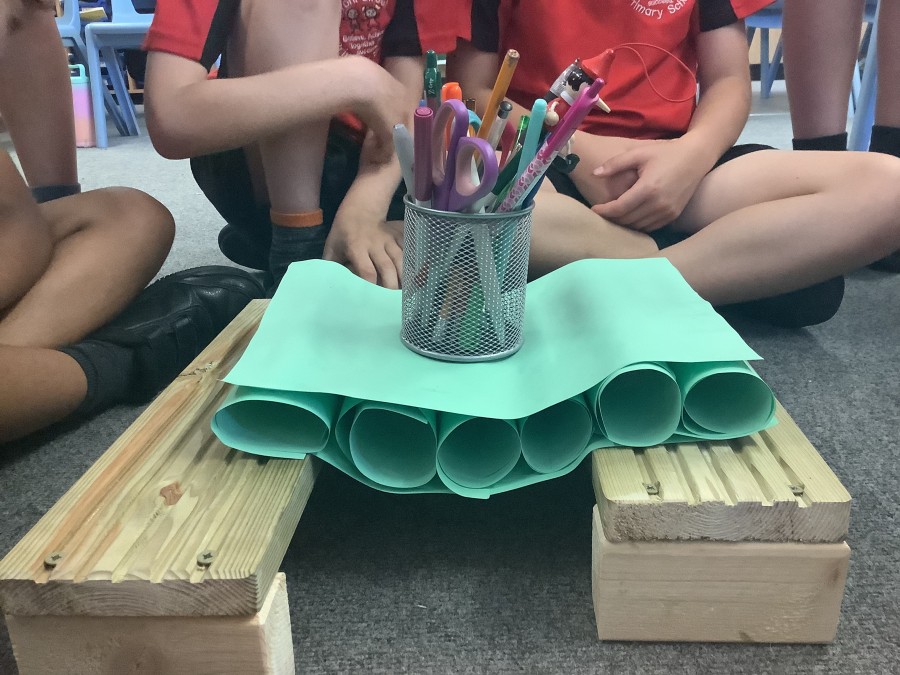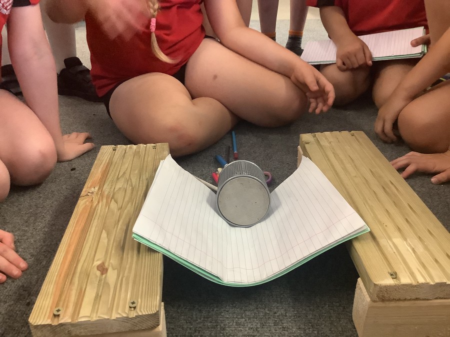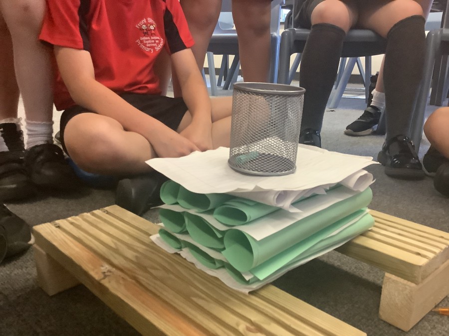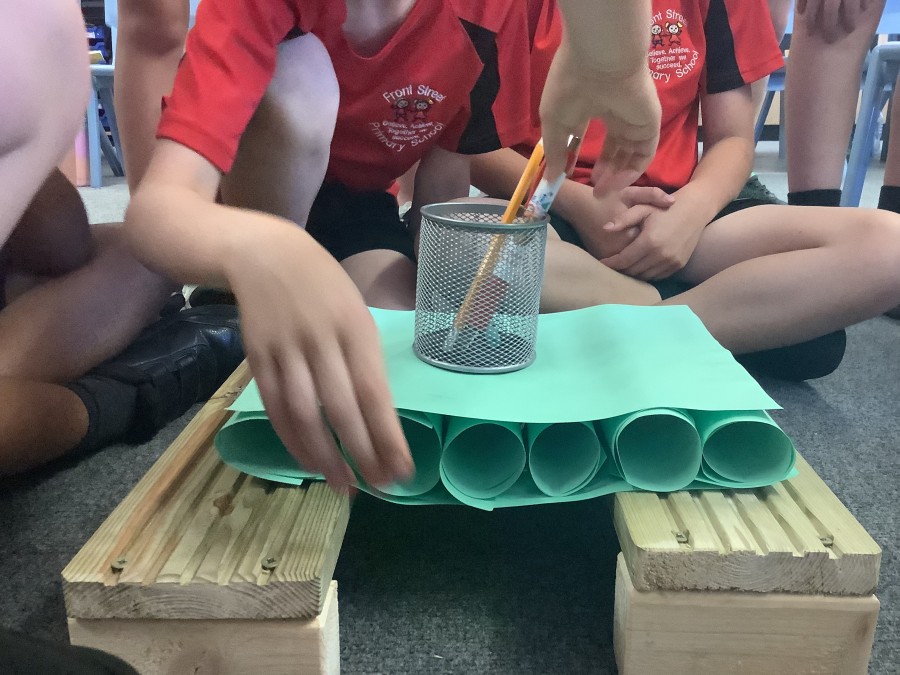 Using paper, card and their creative thinking, the children built and tested their bridges, carefully observing which method could hold the most weight.