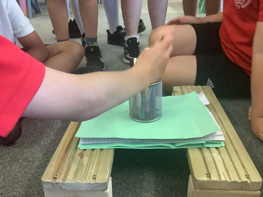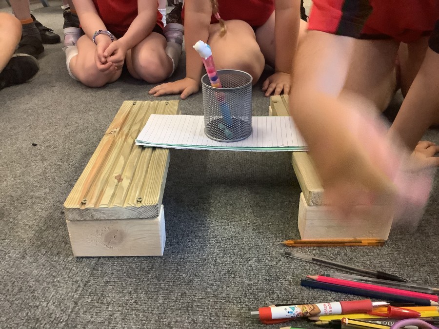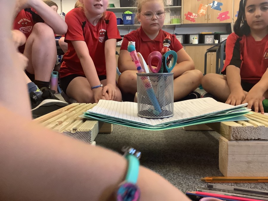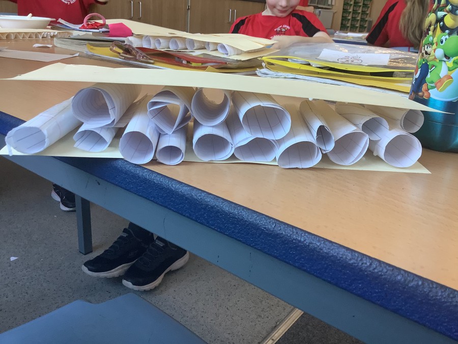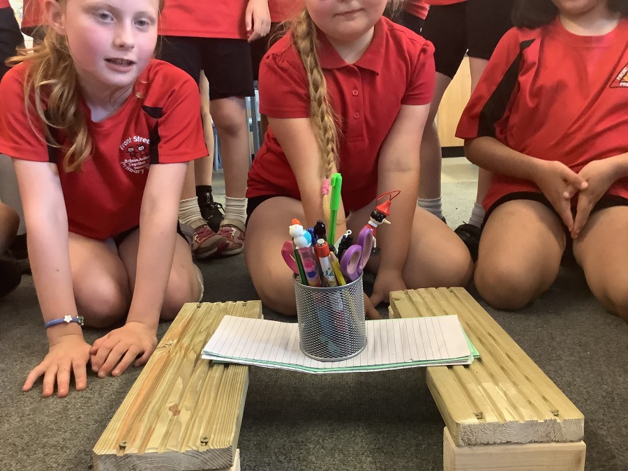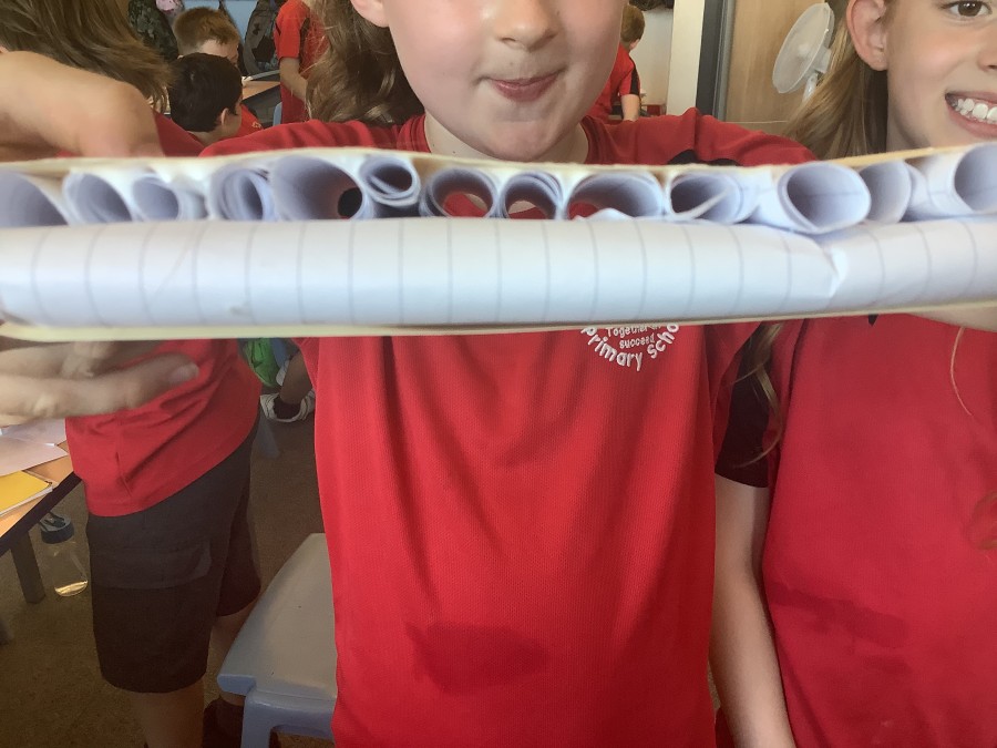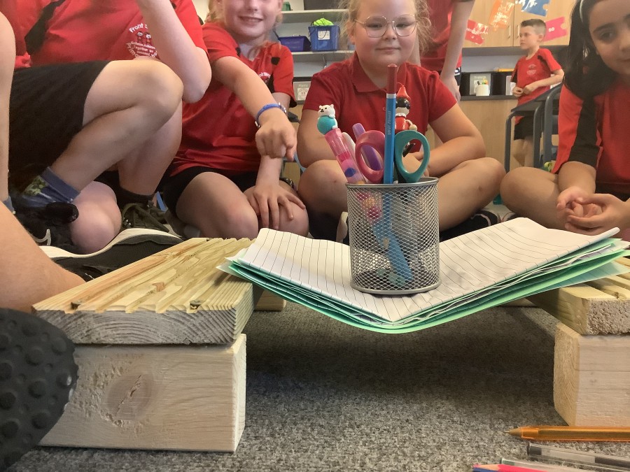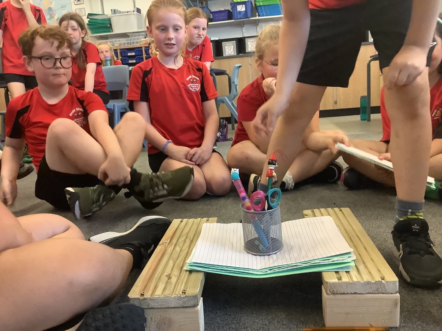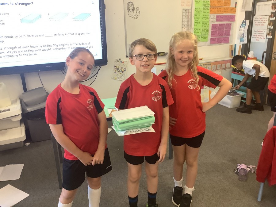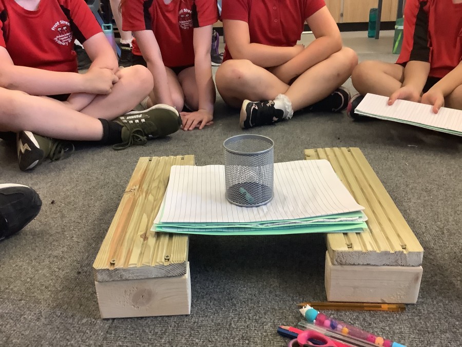 Using paper, card and their creative thinking, the children built and tested their bridges, carefully observing which method could hold the most weight.