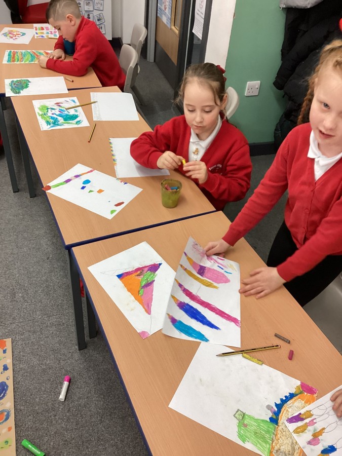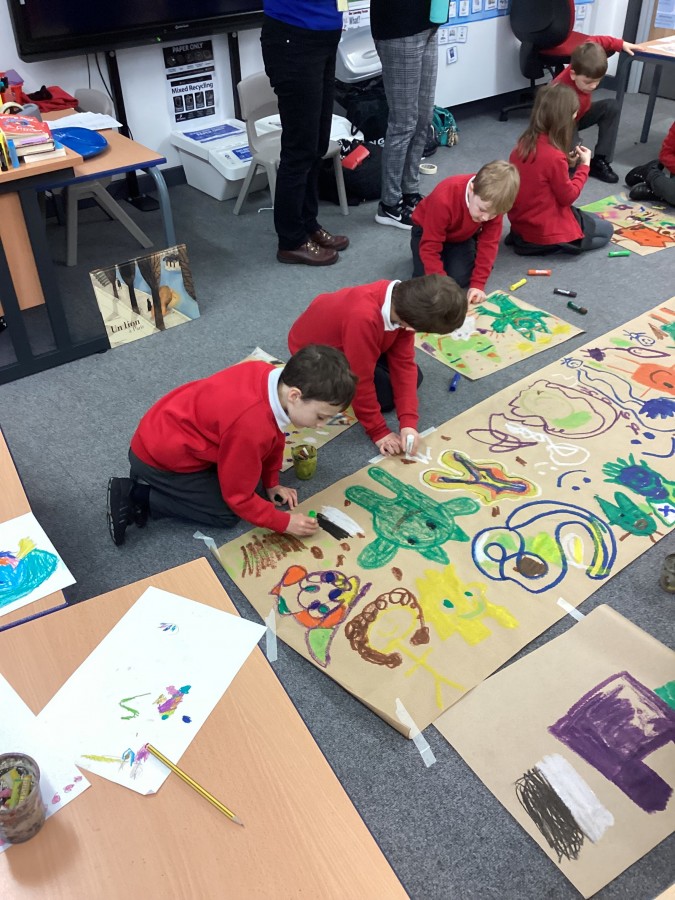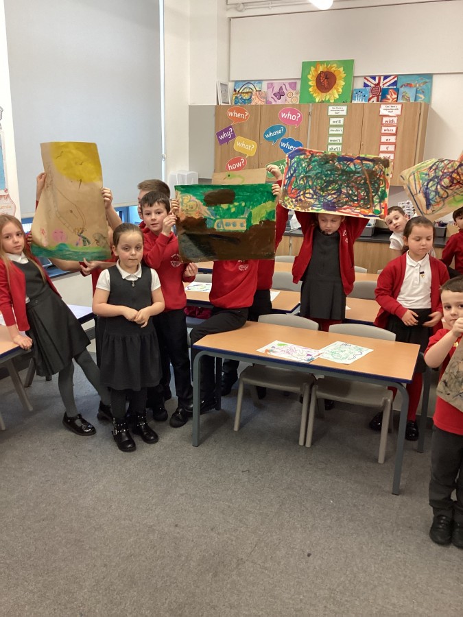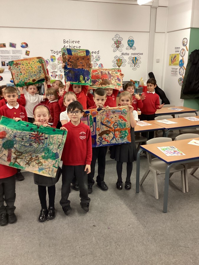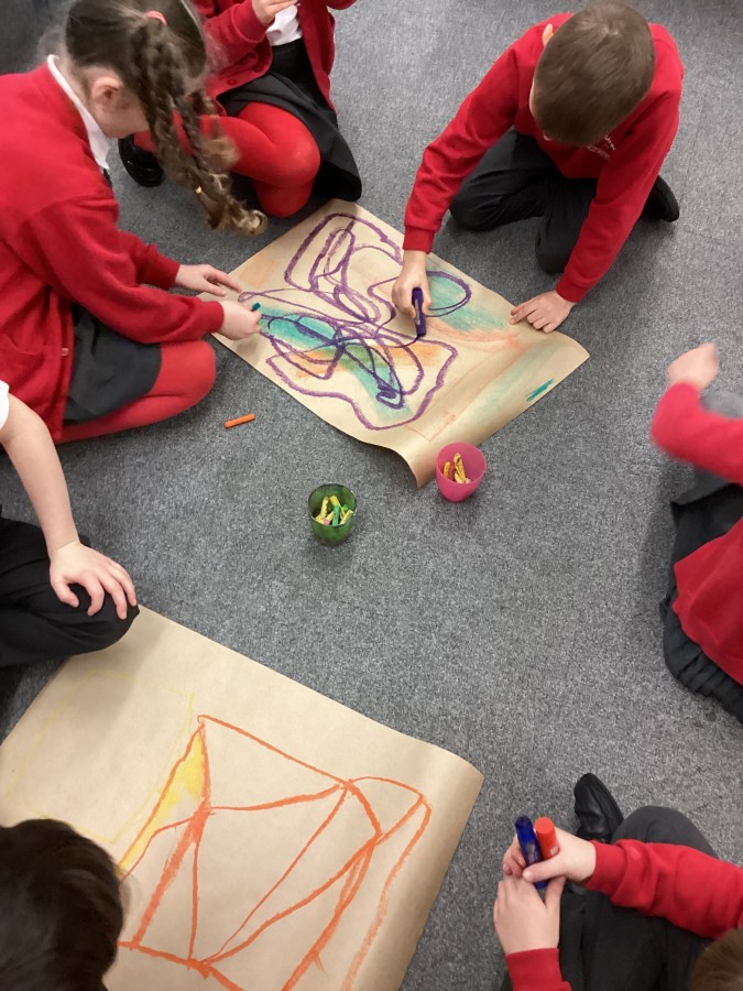 Today we had visitors from the Laing and Shipley art gallery. We looked at paintings with vibrant colours and matched an emotion to the painting. We worked in groups to produce warm and cool colour paintings.