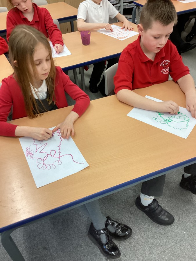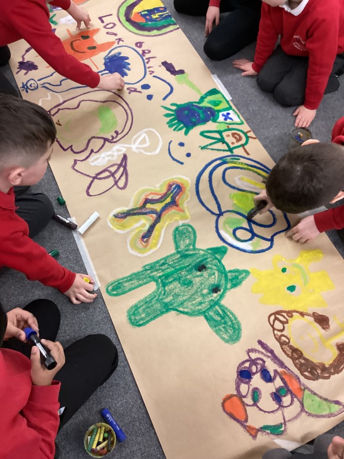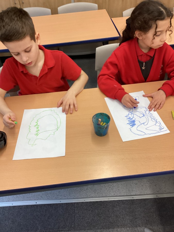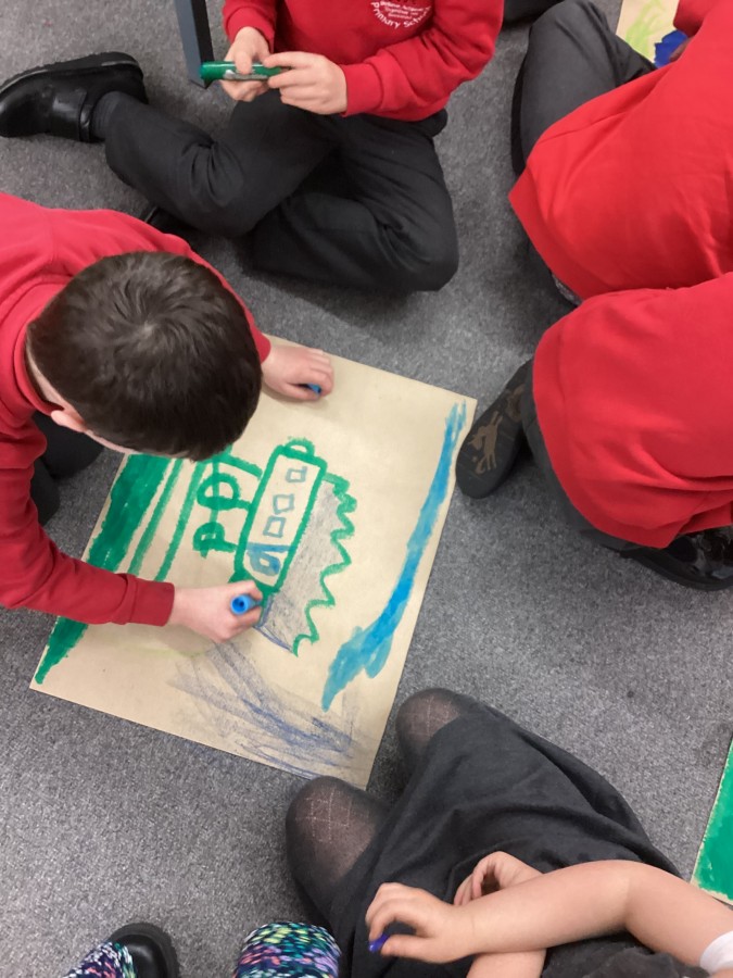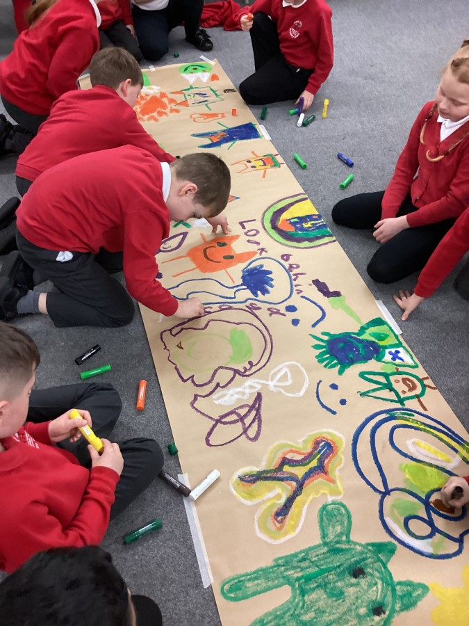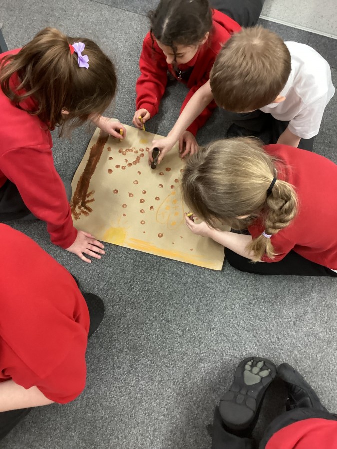 Today we had visitors from the Laing and Shipley art gallery. We looked at paintings with vibrant colours and matched an emotion to the painting. We worked in groups to produce warm and cool colour paintings.