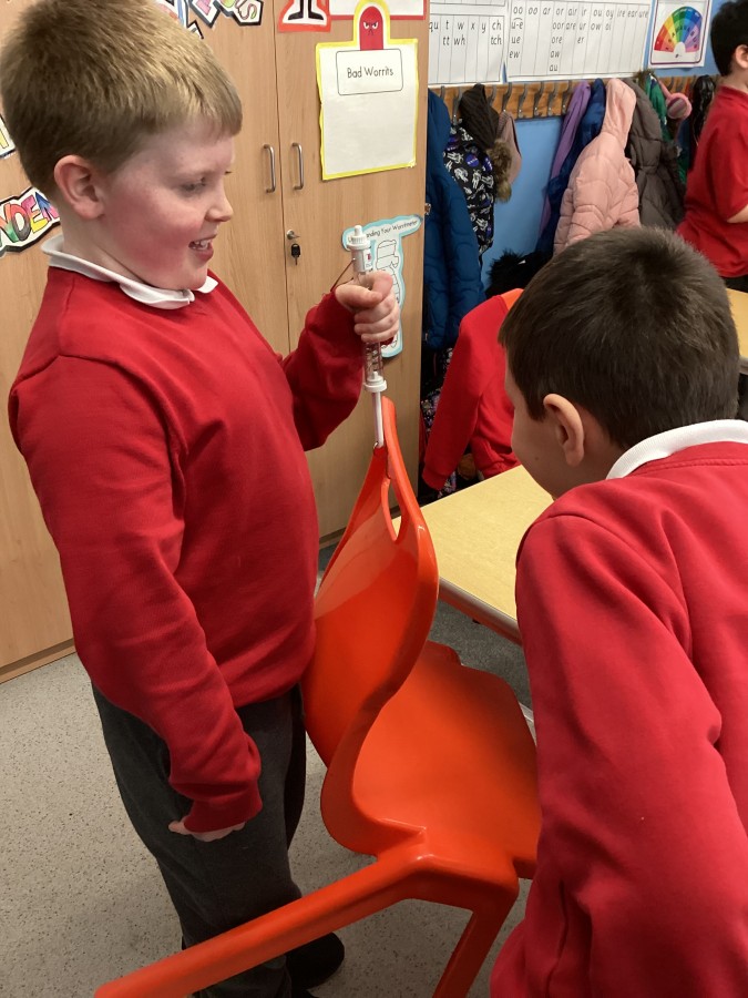 Today we explored using a Newton meter to measure the forces acting on an object when classroom objects were hung on the Newton meter. We were also able to use our maths skills of reading and interpreting different scales.