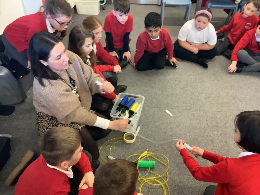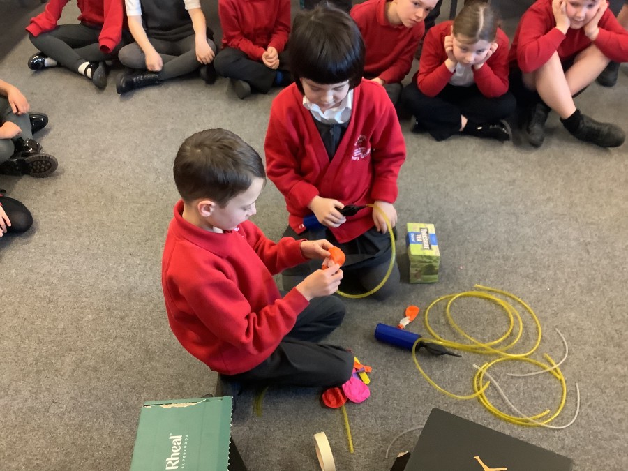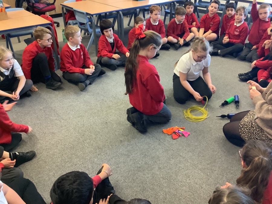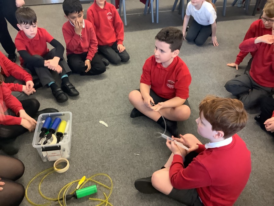 Year 3 have started their new DT topic, pneumatics, which is the use of compressed air to move or power something. They started by exploring some basic pneumatic systems.
