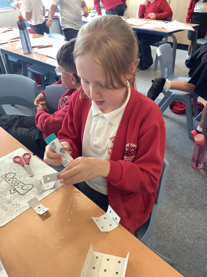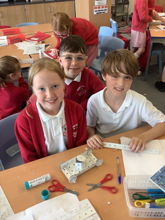 Today, the Year 3 designed, made and adapted their F1 cars ready for competition next lesson. The children used their knowledge of wheels, axles and axle holders to hopefully make the car that will travel the furthest.