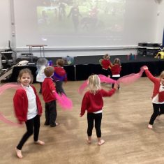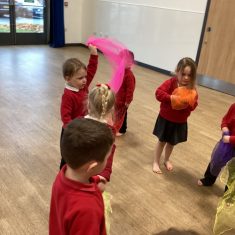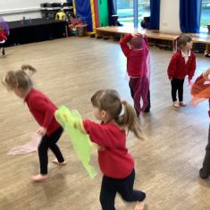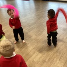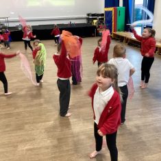 Today we had a great time dancing to a firework song. We had to walk around in a circle holding hands and then listen carefully to the song so that we became fireworks at the right time! We enjoyed waving our fabric pieces in different directions and shapes. Super work everyone! Article 28 31