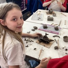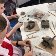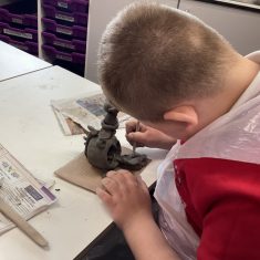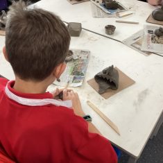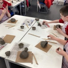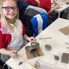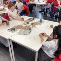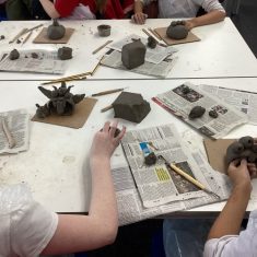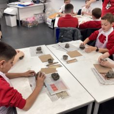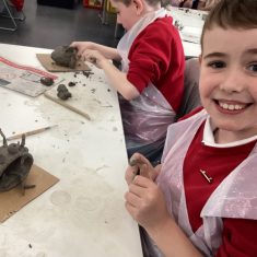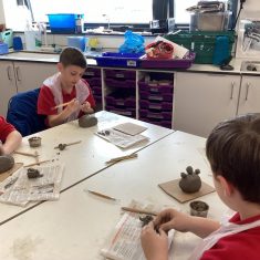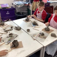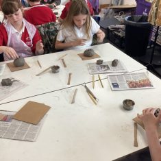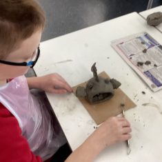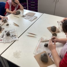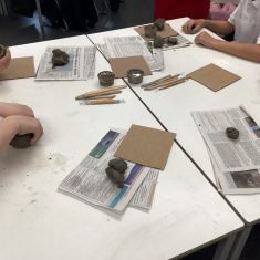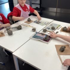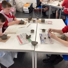5H visited Whickham School for an afternoon of art. We made pinch pot creatures. We thought about form and texture. Our pots will be fired in the kiln, then we can paint them.