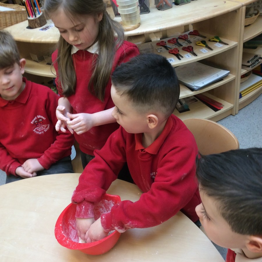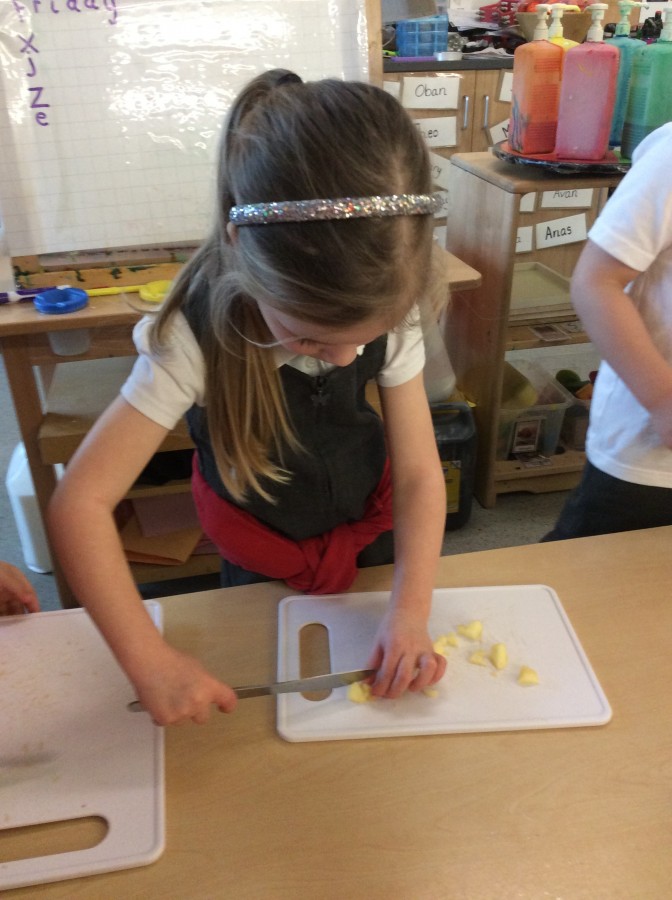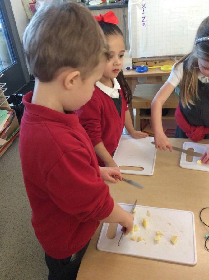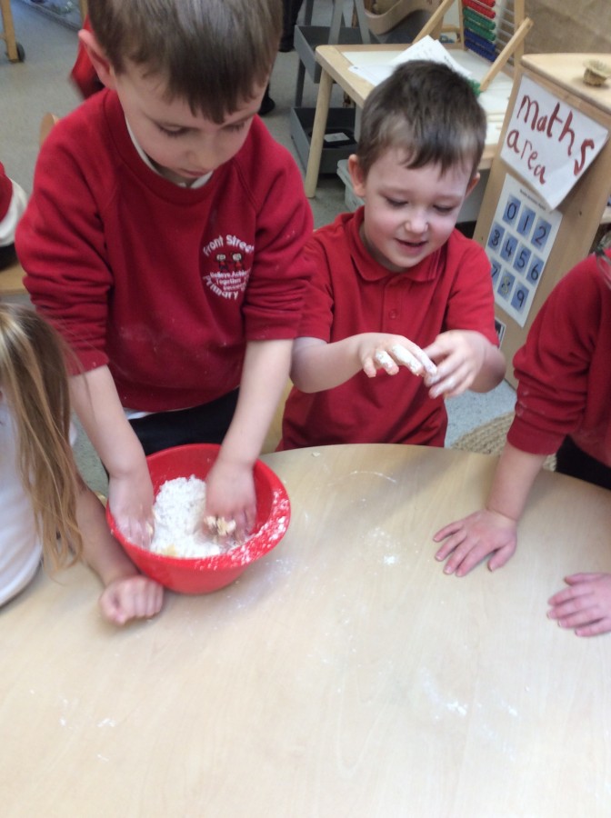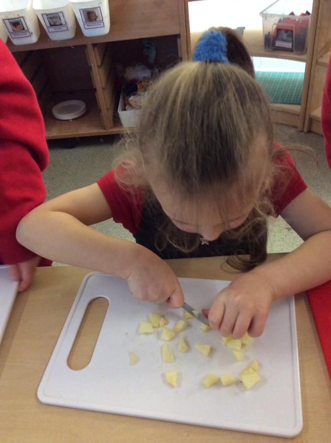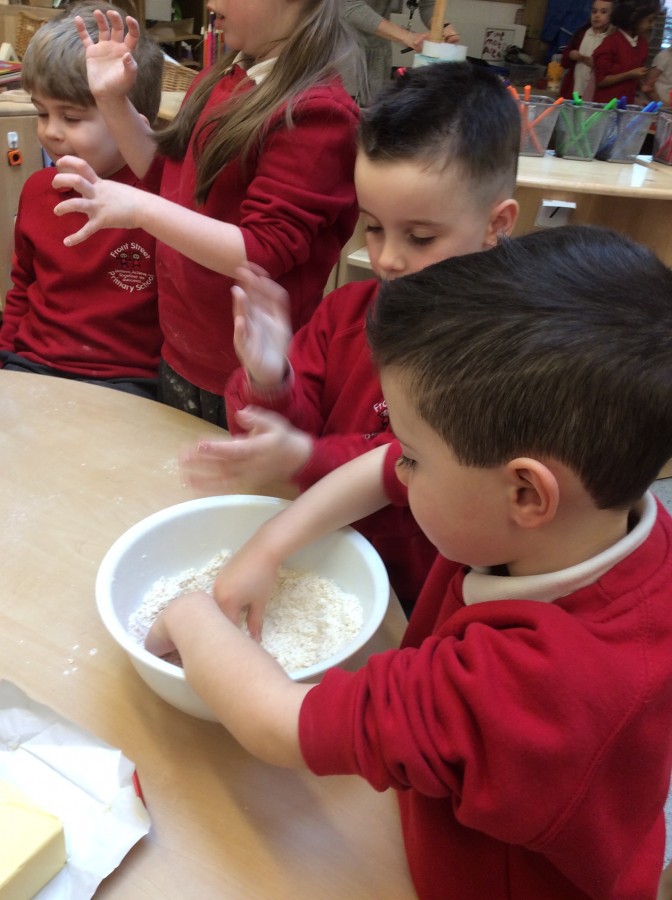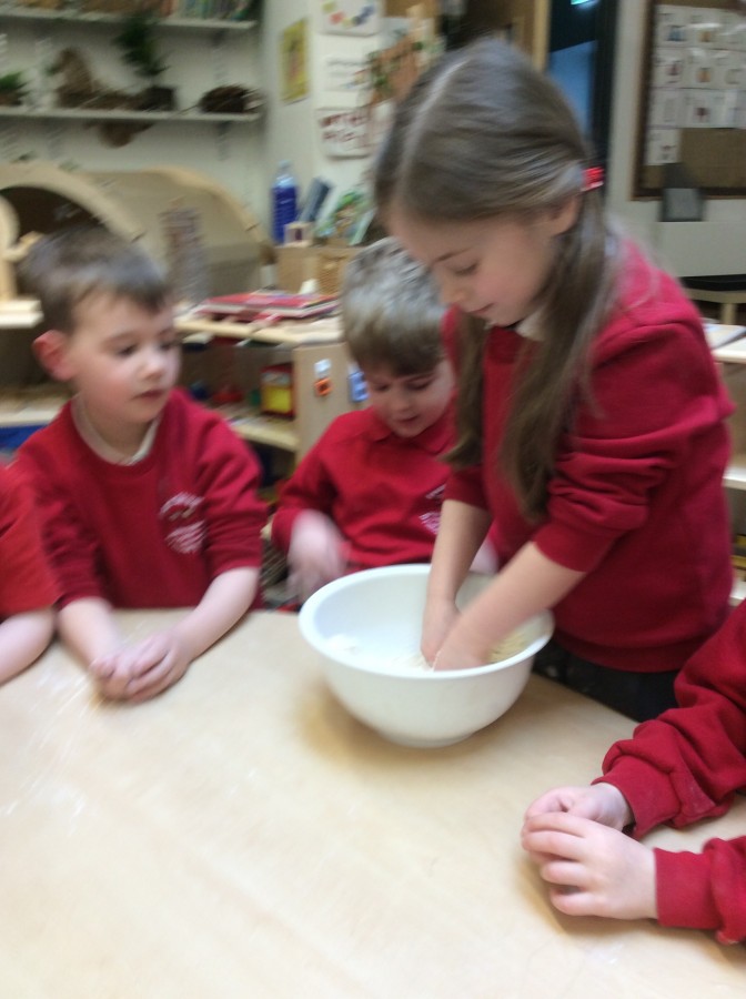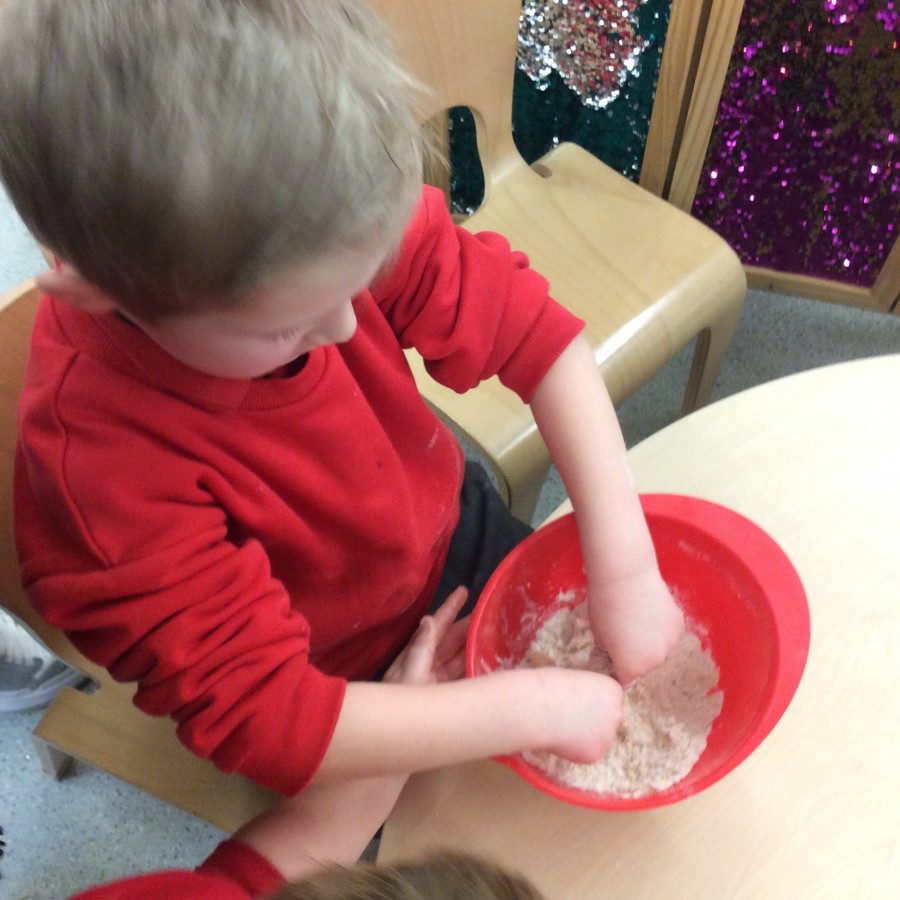 To end our week on ‘The Gruffalo’ we made some Gruffalo crumble. We chopped up the apples and rubbed the butter, sugar and flour together to make the crumble. We hope you all enjoyed eating it!