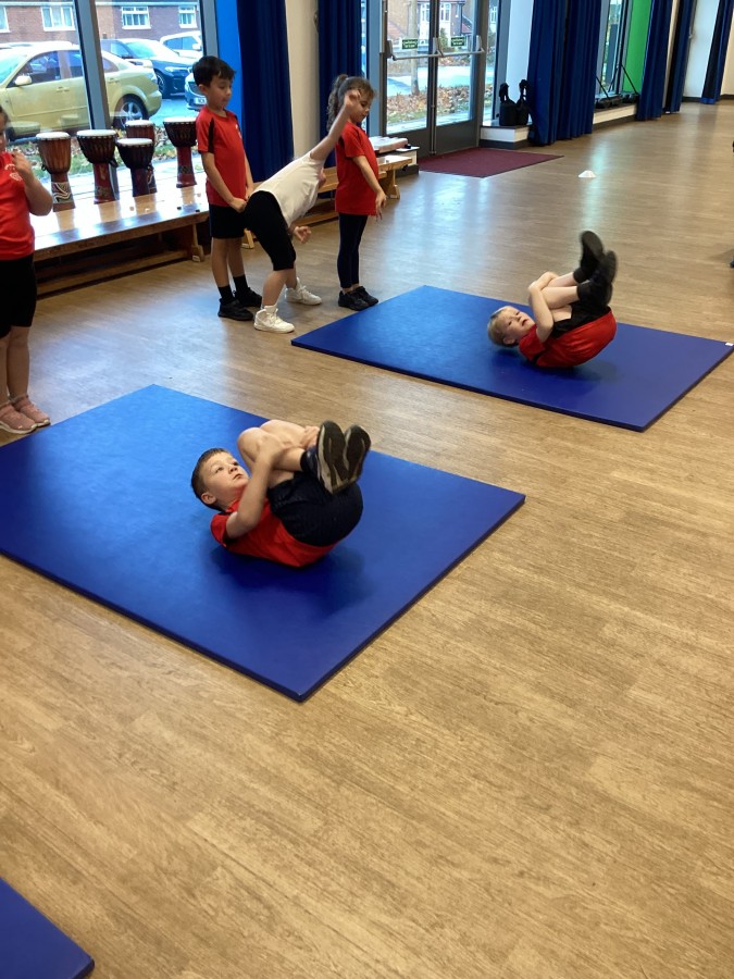Year 2 practised their gymnastic skills. They were able to do front and back supports and rolls.