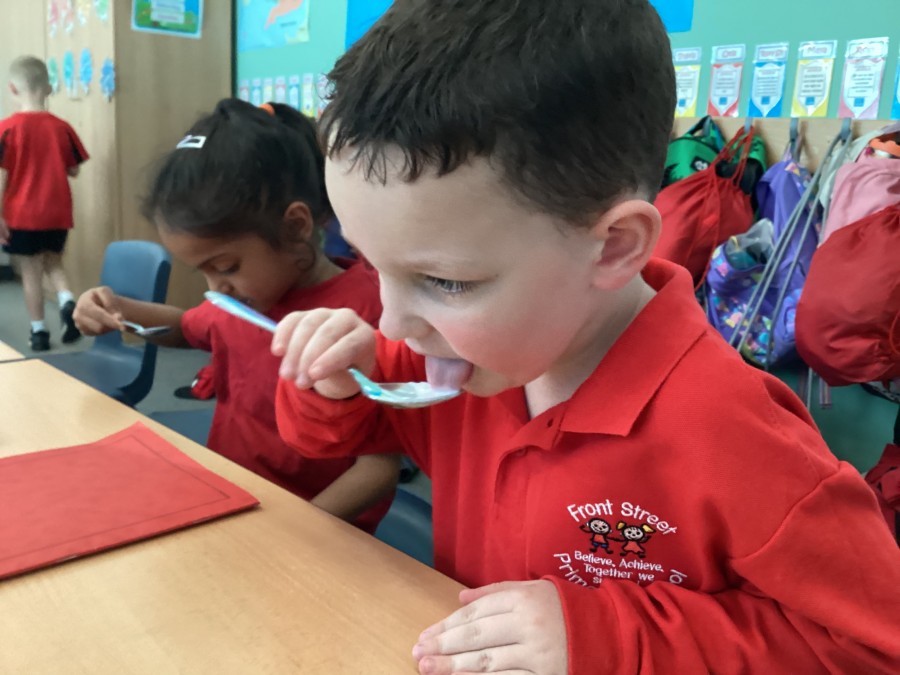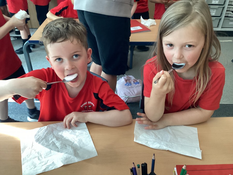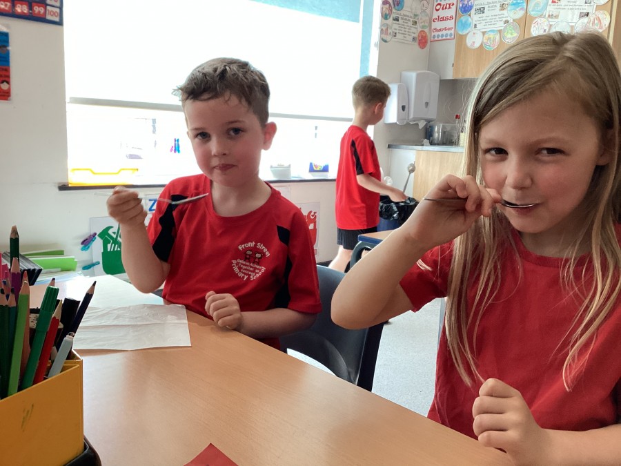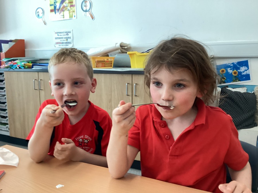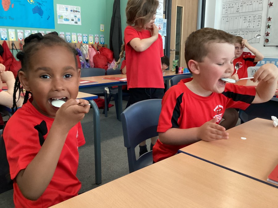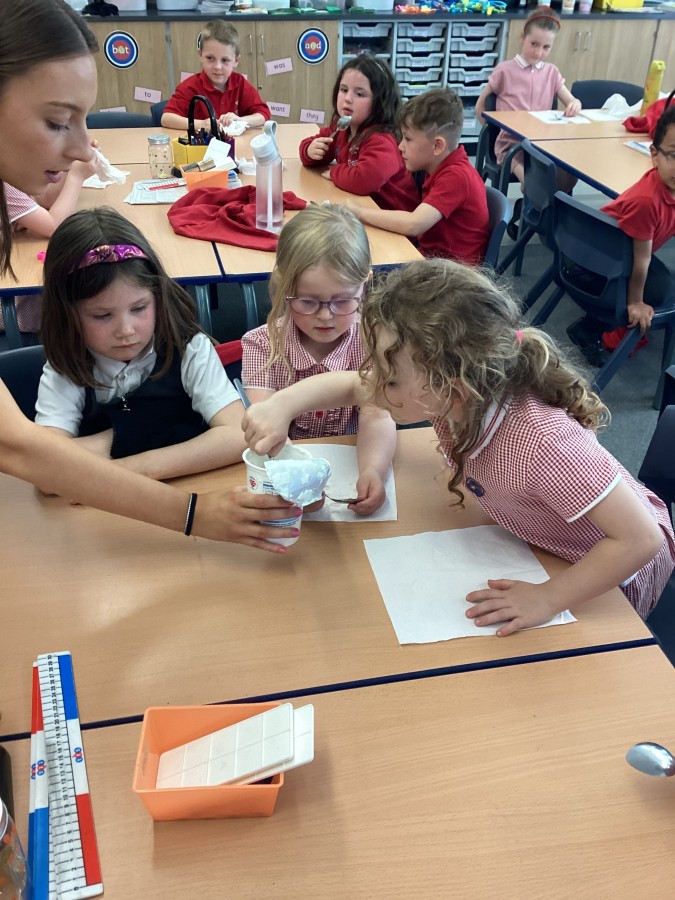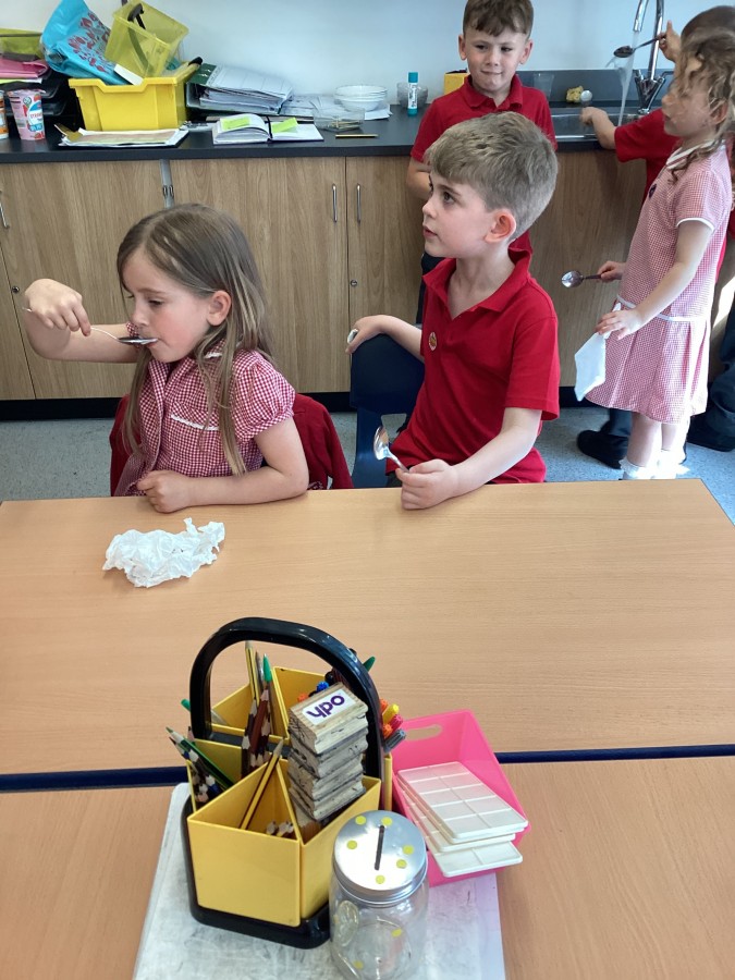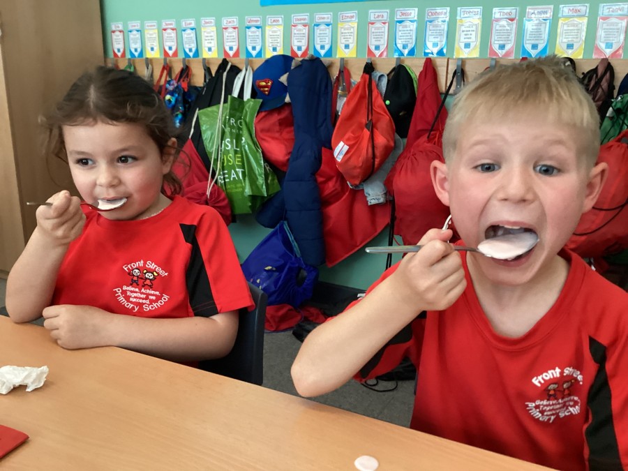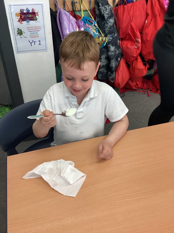 The children enjoyed tasting different fruits and yoghurts to make a healthy breakfast.