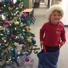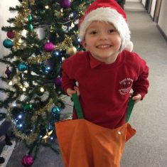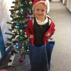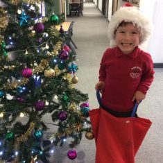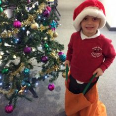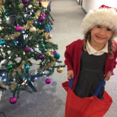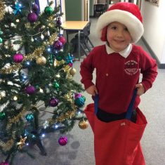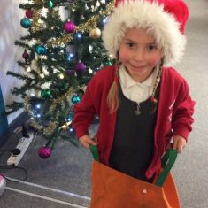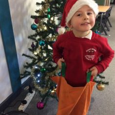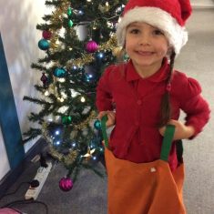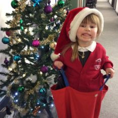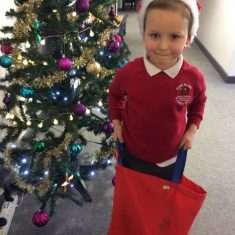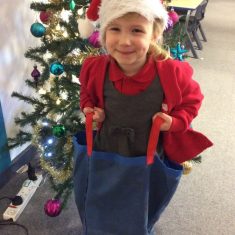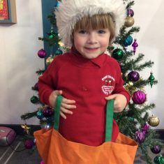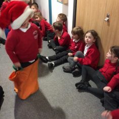 Reception enjoyed taking part in the Friends of Front Street sack race today. We loved listening to Christmas music and wearing Santa hats!