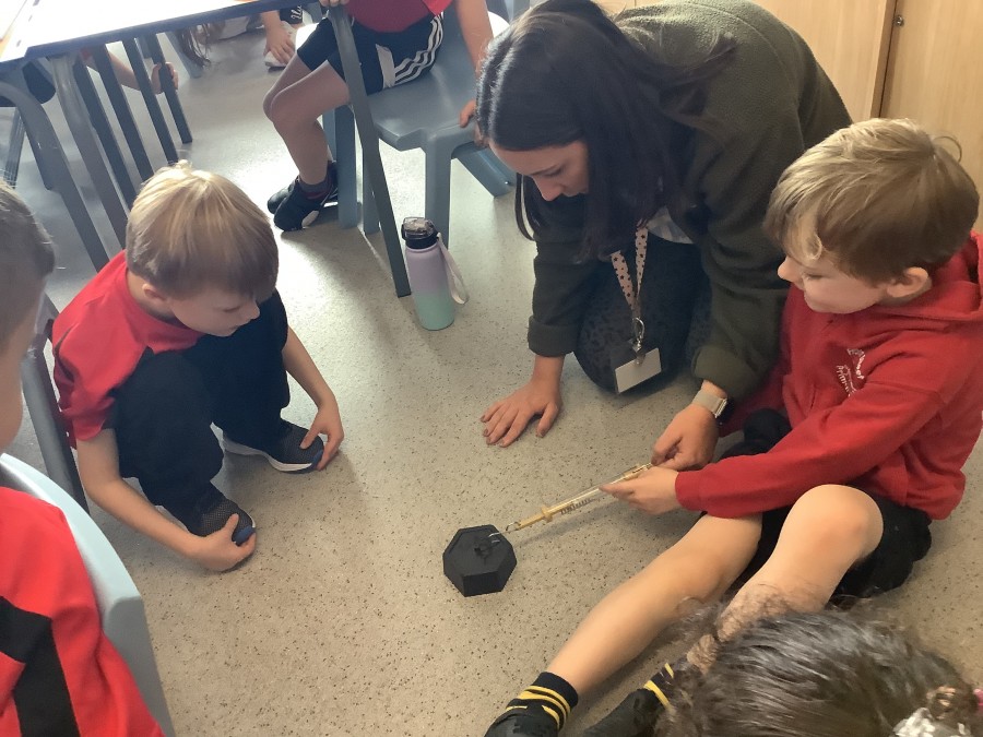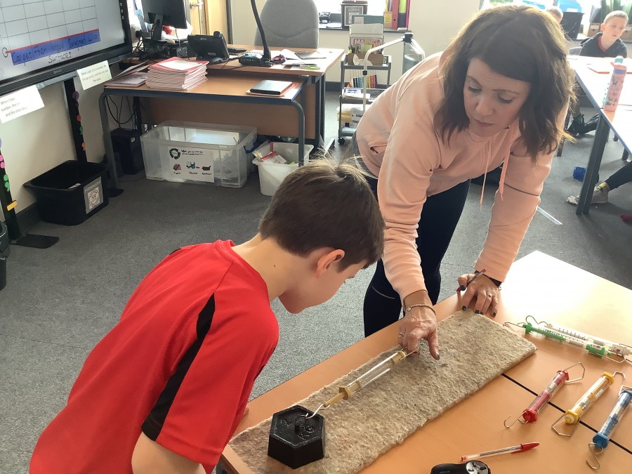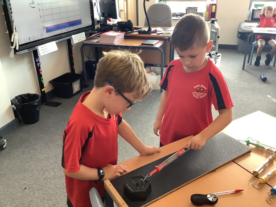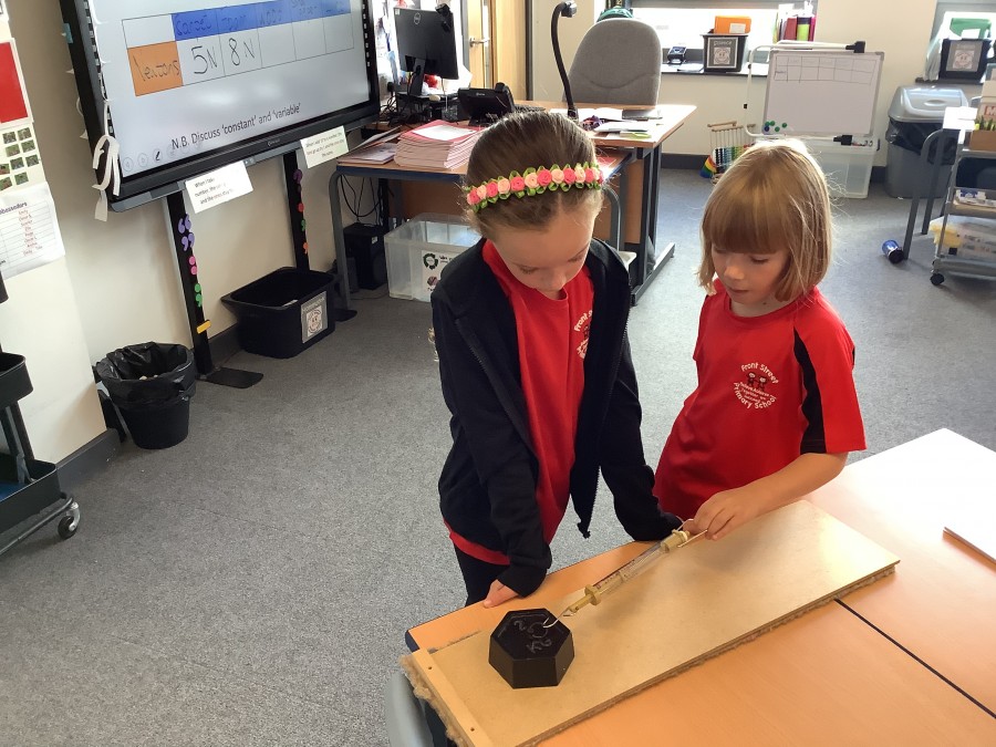 Year three have been learning how to measure forces with Newton meters this week. We asked the question, ‘which surface does the weight slide along easiest?’ We put our data into a table and bar chart.