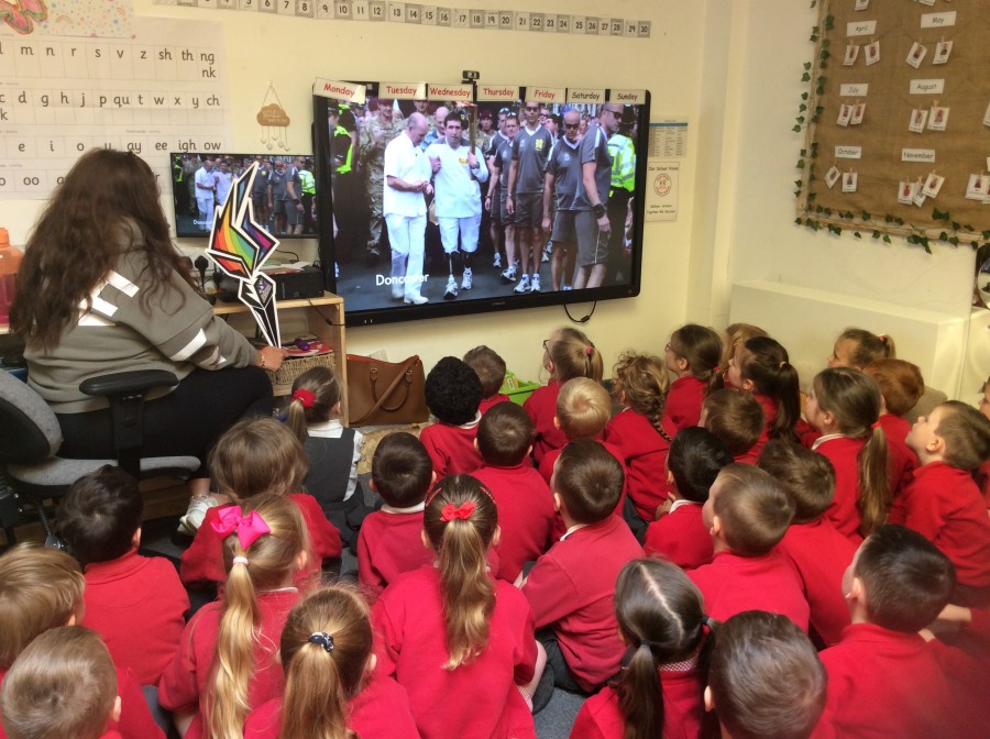 Reception were really lucky to hold the #INSPIRE Olympic torch from the School Sports Partnership. We found out about how the Olympic torch travels around and watched some videos of the real Olympic Torch travelling around the world. We had our own Olympic Torch relay and everyone got the chance to hold the torch.