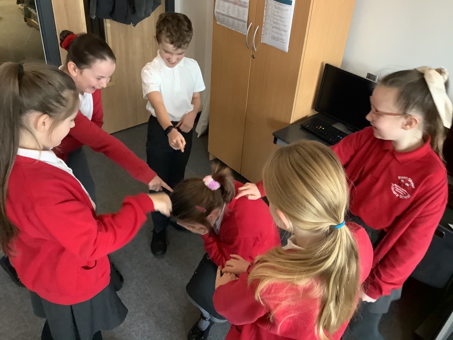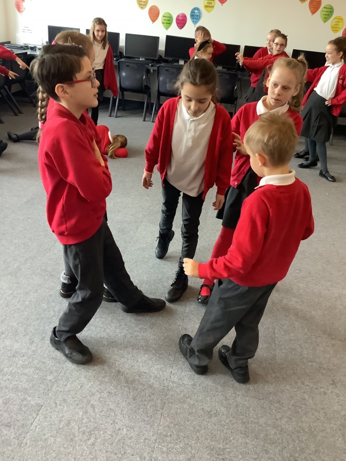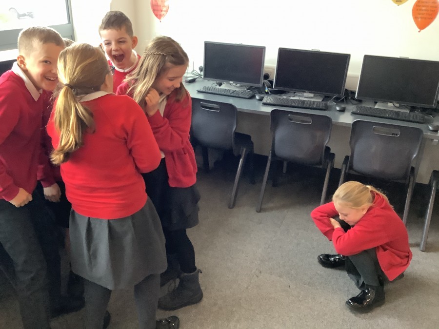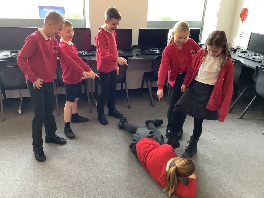 Children explored key vocabulary (bully, bystander, target, trusted adult, cyber bullying, etc.) and made still pictures in small groups to show different scenarios.