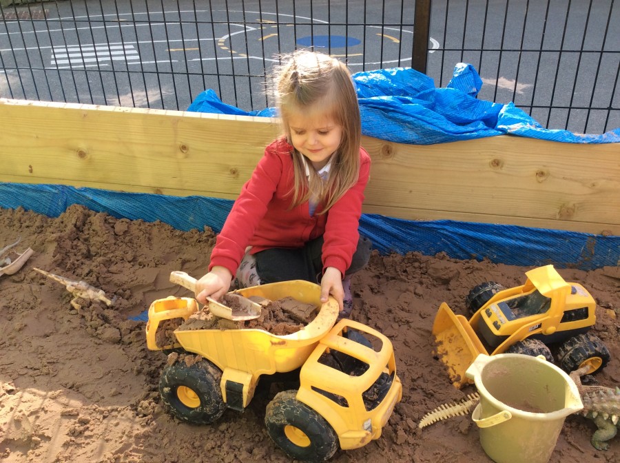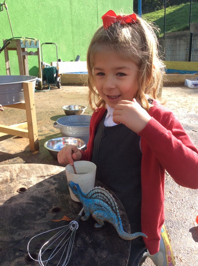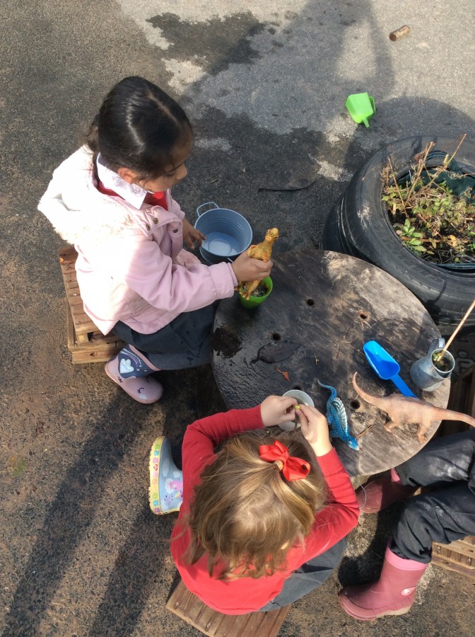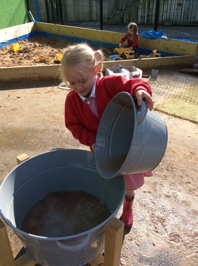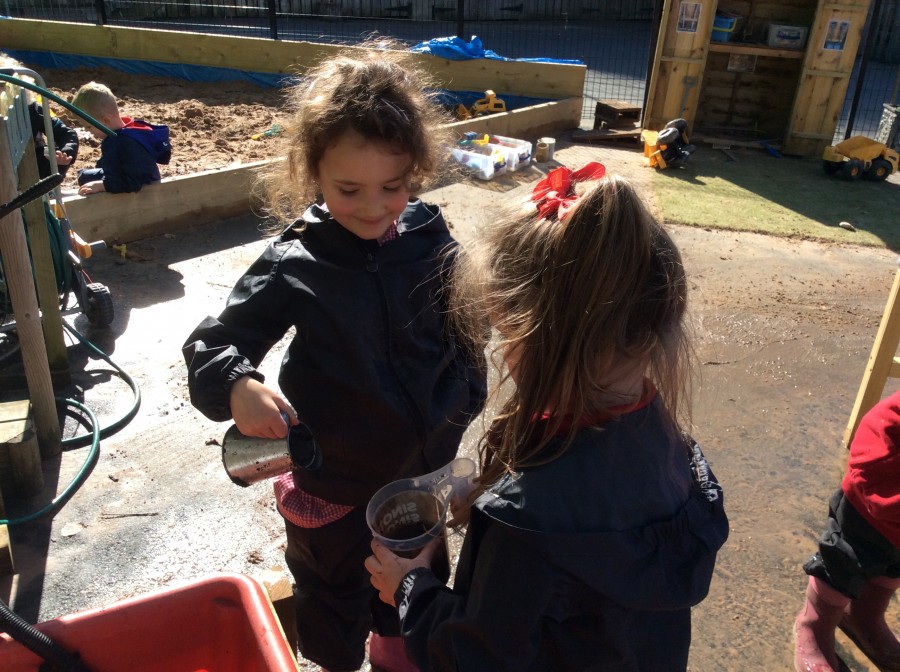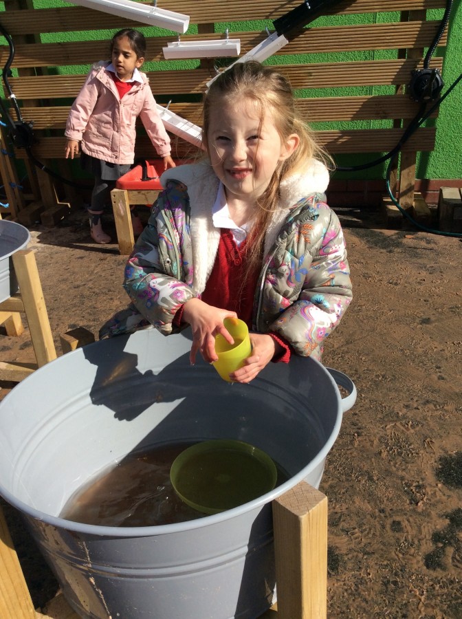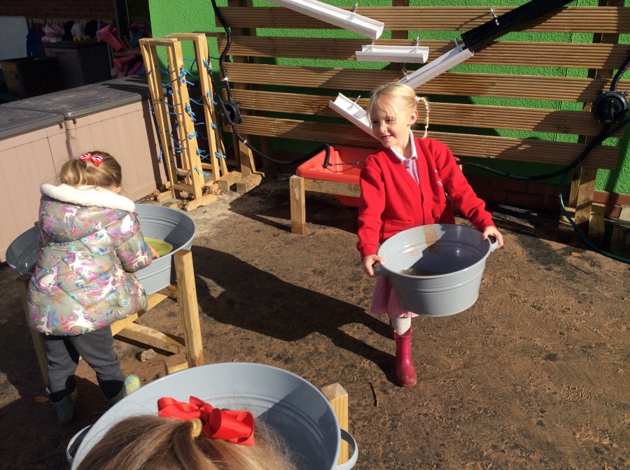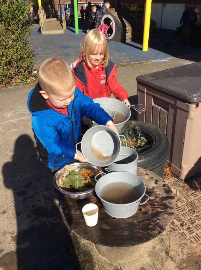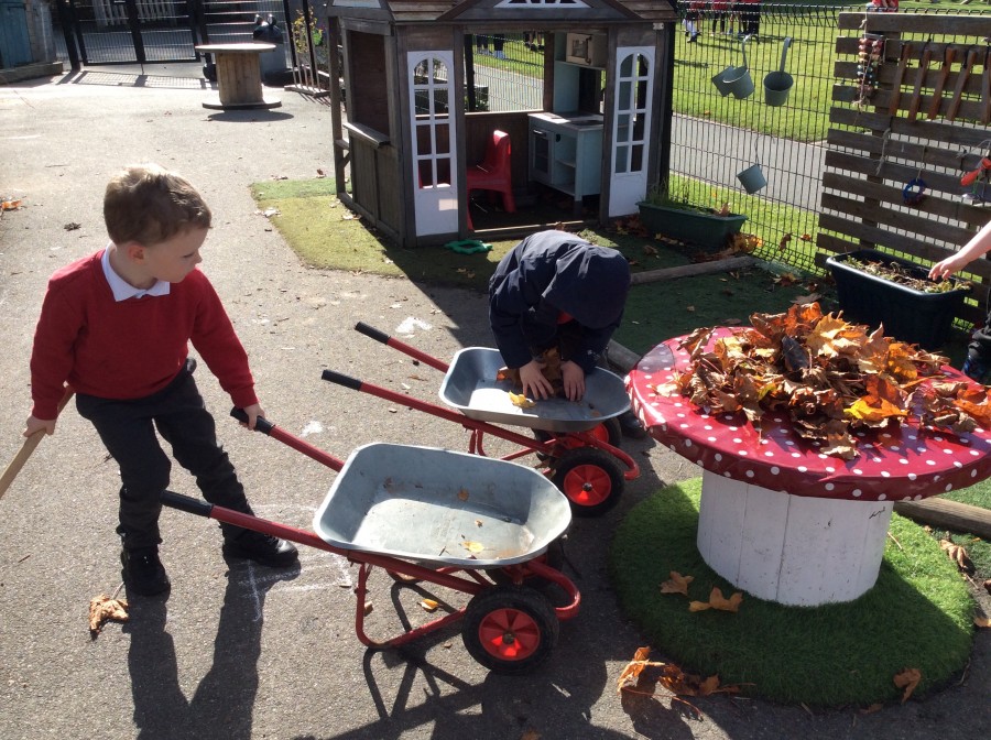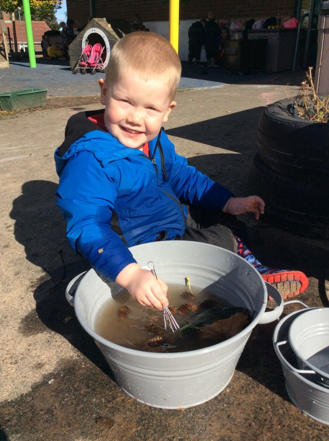 We have enjoyed using the water area and sweeping up leaves this week in our outdoor area!
