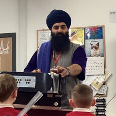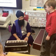 Jaswinder Singh from the North East Sikh Service visited our school. He spent time with Years 3, 4 and 5. He explained about what Sikhs believe and how they live their lives, including the 5 Ks. He even played traditional musical instruments, like the harmonium, and sang for us! We really enjoyed his visit,